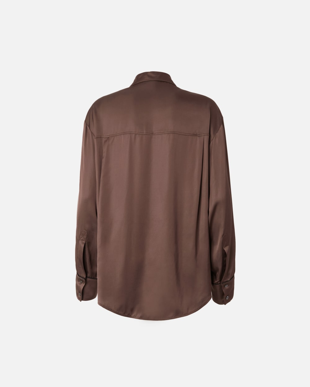 Glossy shirt with plunging neckline marrone e terra d'africa