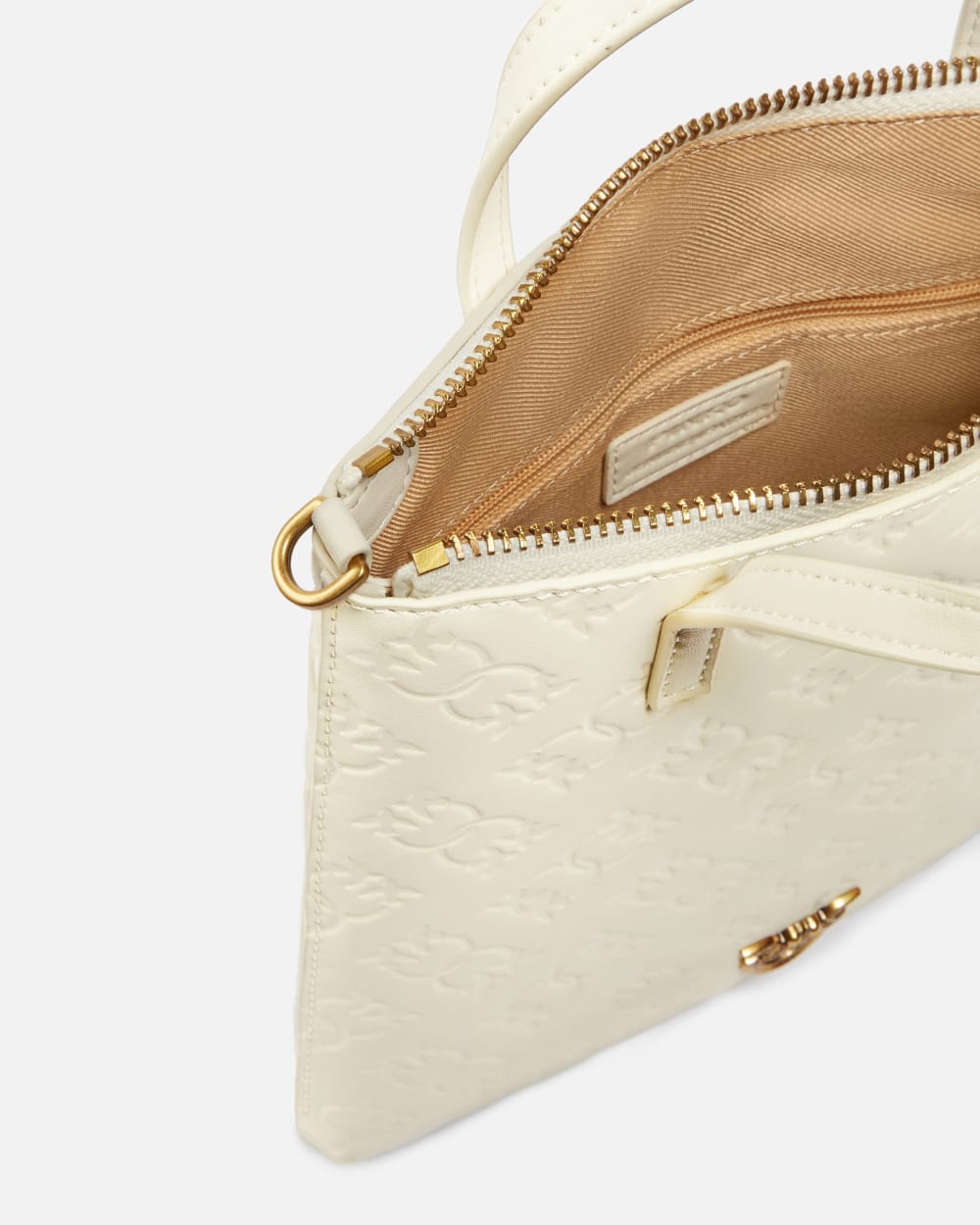 Petit cabas en cuir soyeux au toucher rehaussé d’un motif gaufré Love Birds Monogram. Doublé de polycoton, ce modèle dispose de fentes pour cartes de crédit à l’intérieur et est doté d’une double anse supérieure pour un porté main et d’une longue bandoulière en cuir ajustable et amovible. Modèle griffé d’une plaquette à logo Love Birds Diamond Cut en métal. Activez votre sac PINKO : vérifiez l’authenticité de votre article et accédez à une expérience personnalisée en approchant votre smartphone de la broderie Love Birds à l’arrière du sac !
