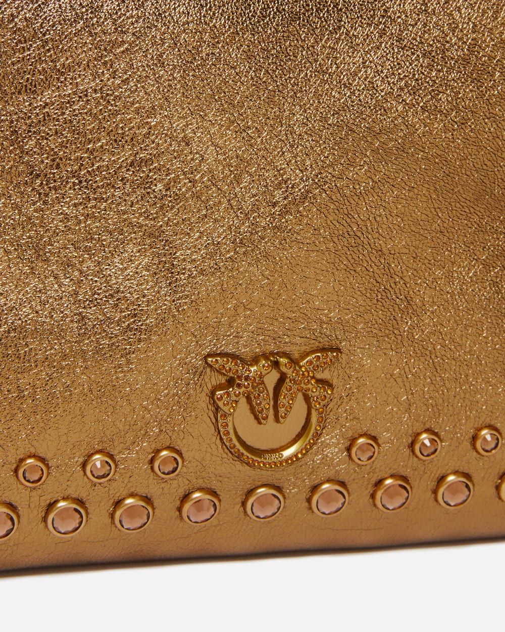 Laminated evening crossbody bag with rhinestones bronzo e bronzo