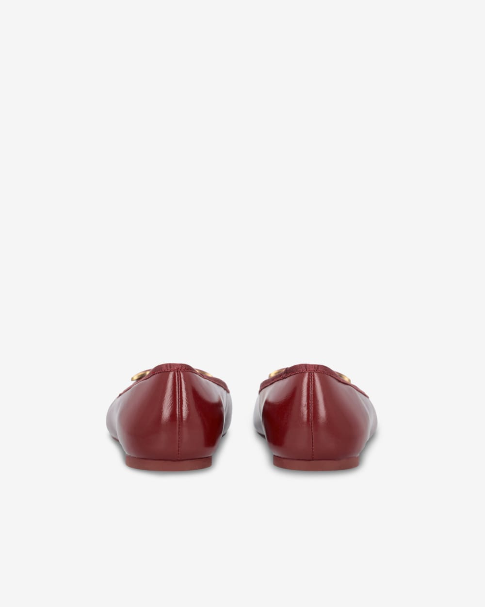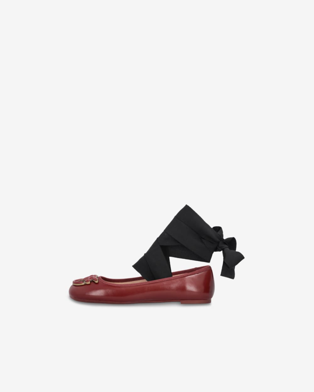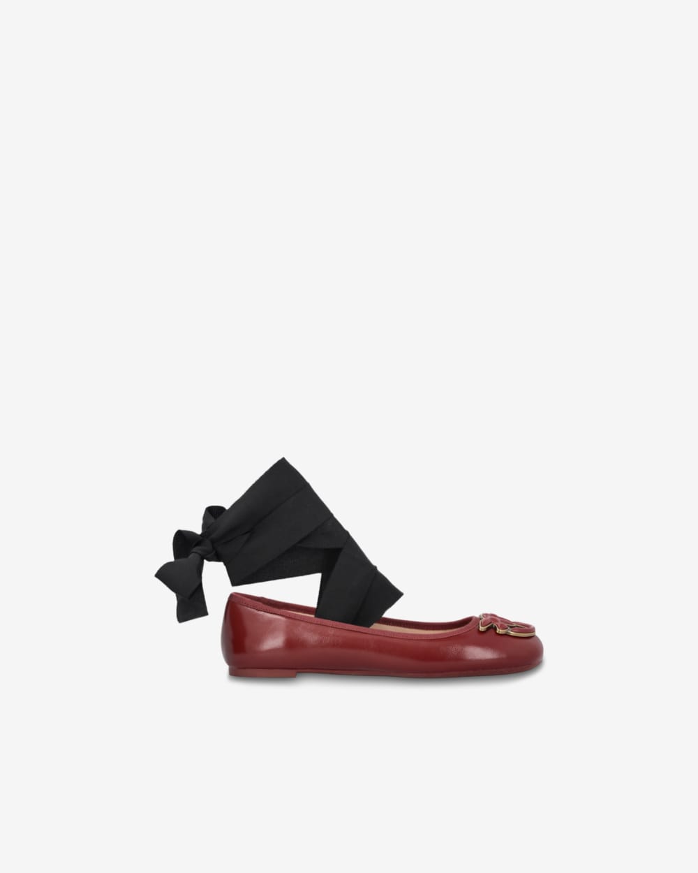 Ballerines en cuir nappa avec rubans amovibles à nouer à la cheville. Bout rond griffé du logo Love Birds émaillé. Doublure et semelle intérieure en cuir, semelle en caoutchouc avec talon plat de 1,5 cm.