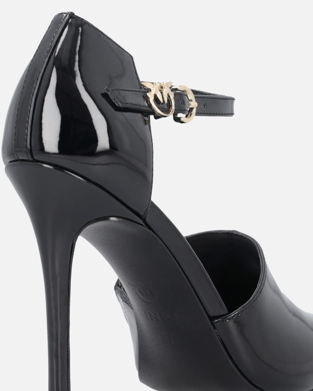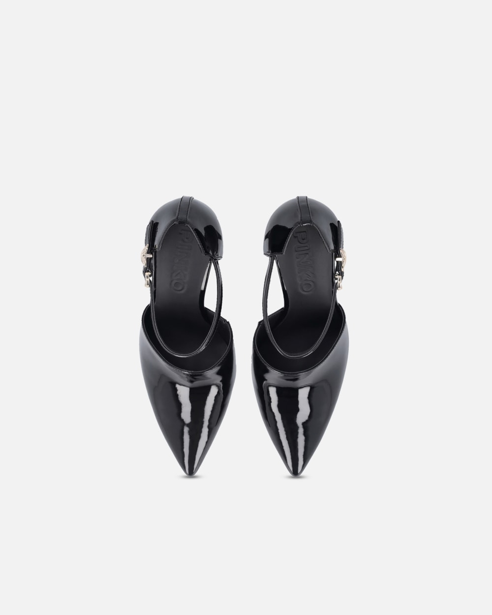 Chaussures à talon de 10,5 cm en tissu effet cuir verni avec bout pointu et bride sur le devant, griffées dune mini plaquette à logo Love Birds sur le côté. Semelle en tunit, un matériau synthétique semblable au cuir, semelle intérieure et doublure en cuir.