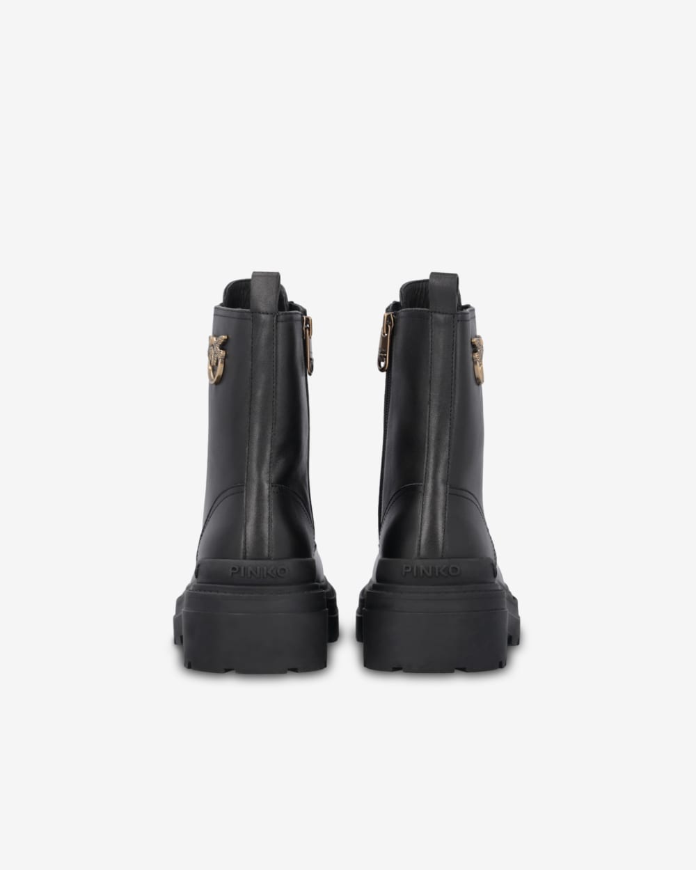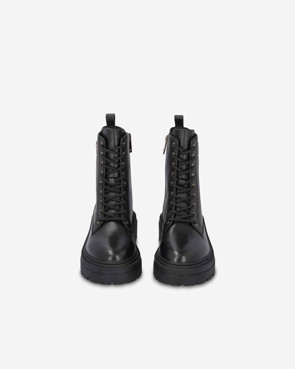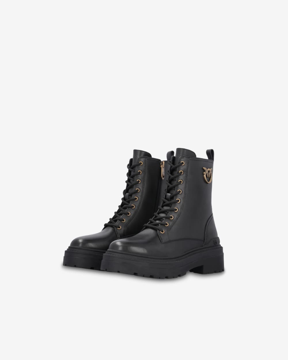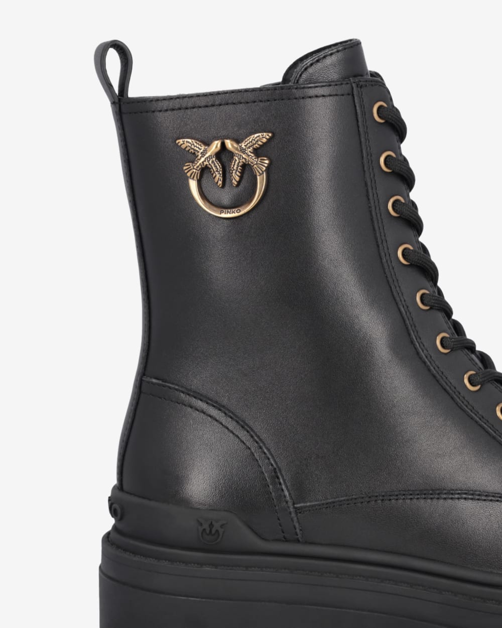 Rangers en cuir à lacets griffés dune plaquette à logo Love Birds en métal sur le côté extérieur. Zip côté intérieur pour faciliter lenfilage. Semelle renforcée en caoutchouc, talon de 5,5 cm, doublure et semelle intérieure en cuir.