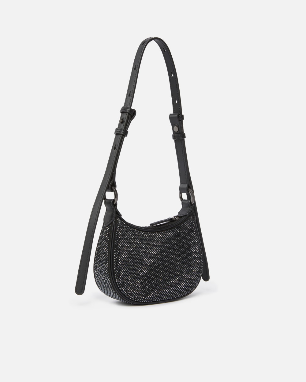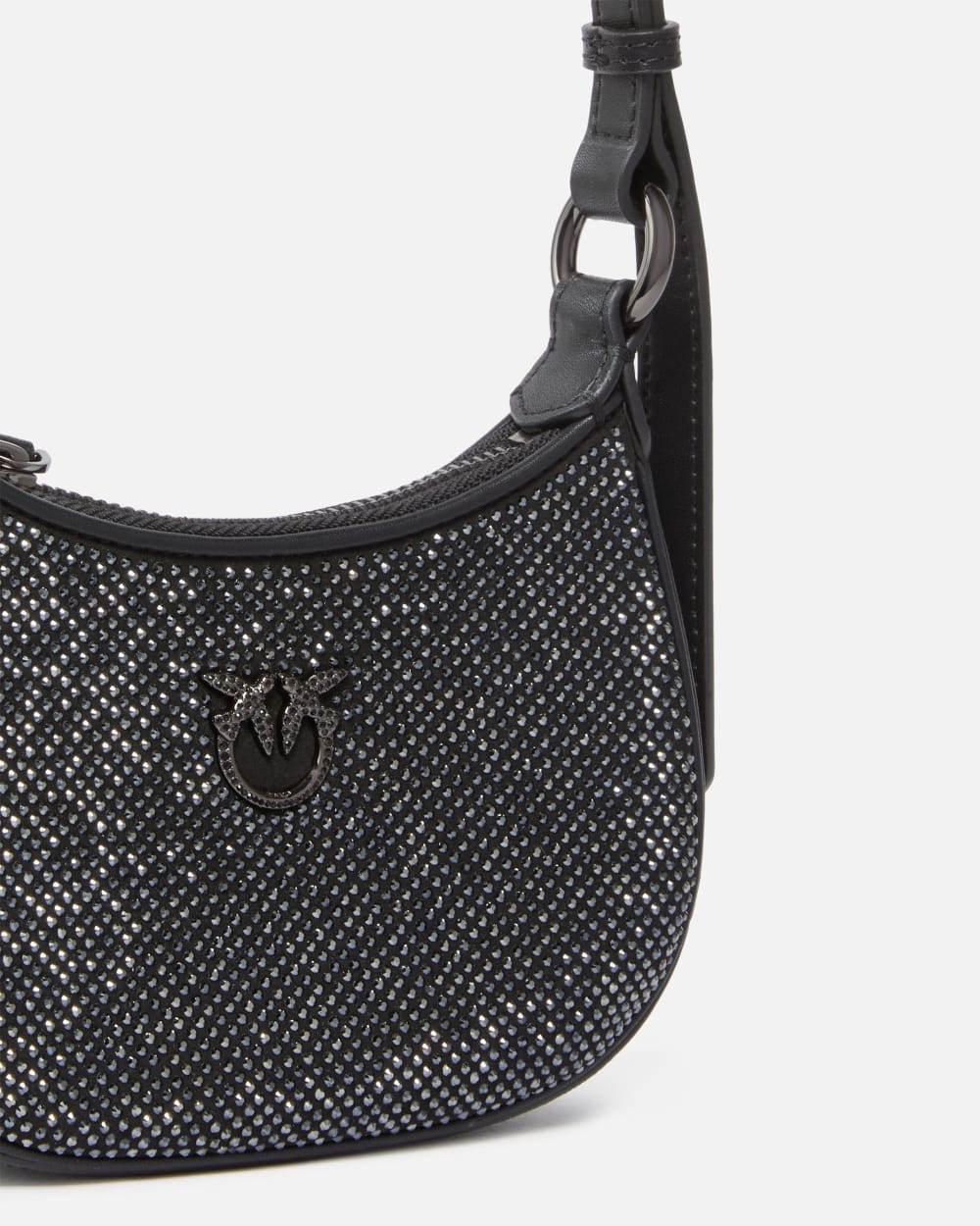 Petit sac porté épaule Baby Half Moon Bag à bandoulière réglable en cuir lisse rehaussé de strass all-over. Sa mini boucle Love Birds Diamond Cut en métal, ornée de pavés de strass ton sur ton, apporte une touche élégante et scintillante à vos tenues au quotidien comme en soirée. Doublure en daim microfibre et fermeture zippée. Activez votre sac PINKO : vérifiez lauthenticité de votre article et accédez à une expérience personnalisée en approchant votre smartphone de la broderie Love Birds à larrière du sac !