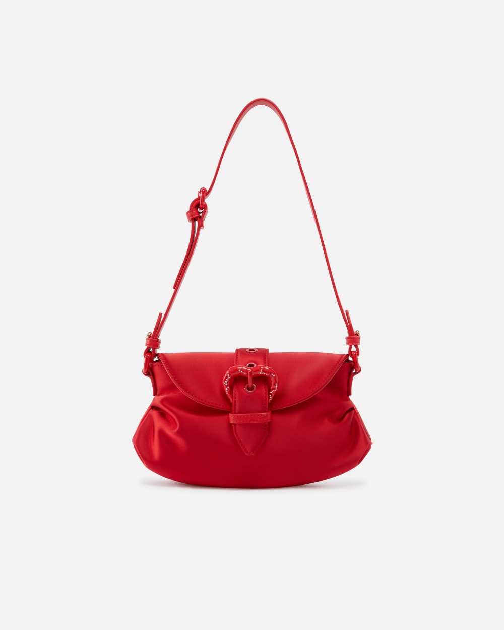 Small Jolene shoulder bag in duchesse with heart-shaped buckle rosso e block color