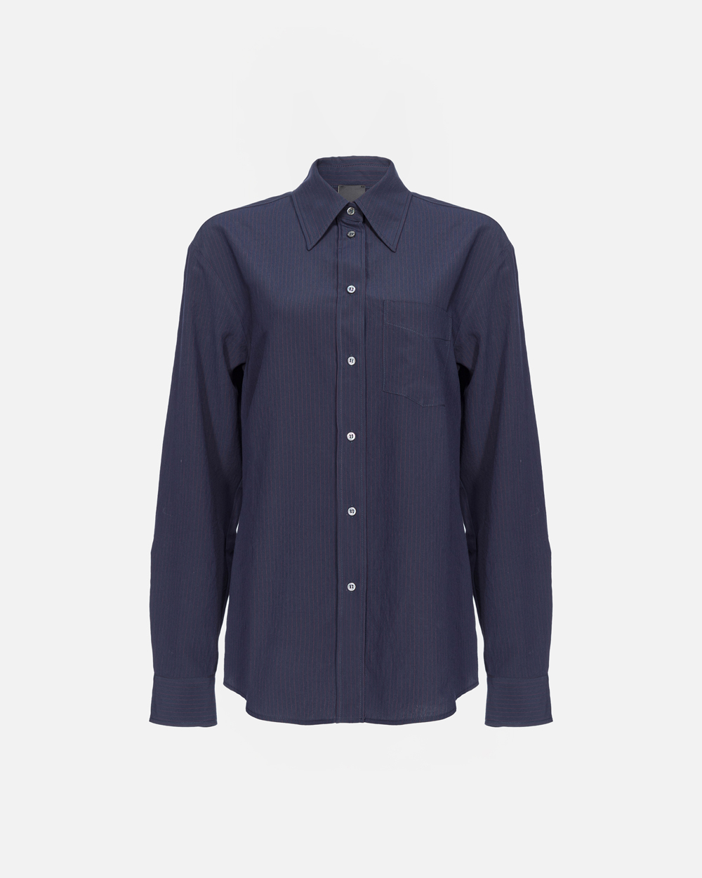 Chemise classique en popeline de coton avec poche poitrine plaquée sur le devant, sur le côté gauche de la poitrine. Col à pointes, manches longues à poignets et fermeture boutonnée sur le devant.
