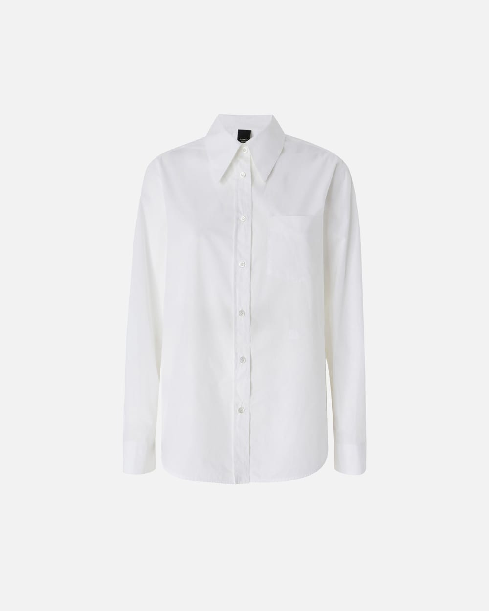 Chemise classique en popeline de coton avec poche poitrine plaquée sur le devant, sur le côté gauche de la poitrine. Col à pointes, manches longues à poignets et fermeture boutonnée sur le devant.