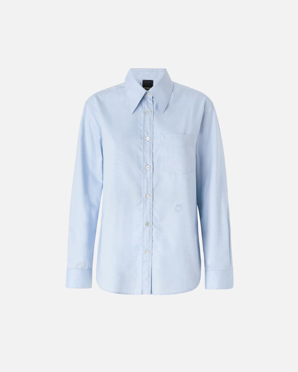 Chemise en pur coton Oxford déclinée en bleu clair classique. Véritable intemporel, cette chemise présente un col pointu classique, une poche poitrine plaquée et le logo Love Birds brodé sur le devant. Sa fente milieu dos et sa fermeture par petits boutons sur le devant complètent un style polyvalent adapté aux looks de tous les jours, des plus formels aux plus élégants.