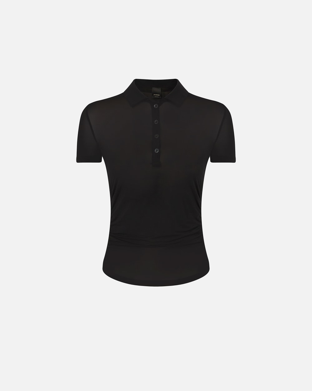 Polo ajusté à manches courtes en jersey crêpe de viscose stretch ultraléger au fini mat. Le tissu principal est fabriqué avec 92% de viscose provenant de forêts gérées de manière responsable.