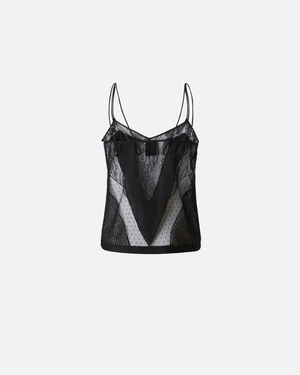 Top sans manches esprit lingerie composé dun patchwork de différentes matières : dentelle, tulle et fil coupé. Fines bretelles et encolure cur.