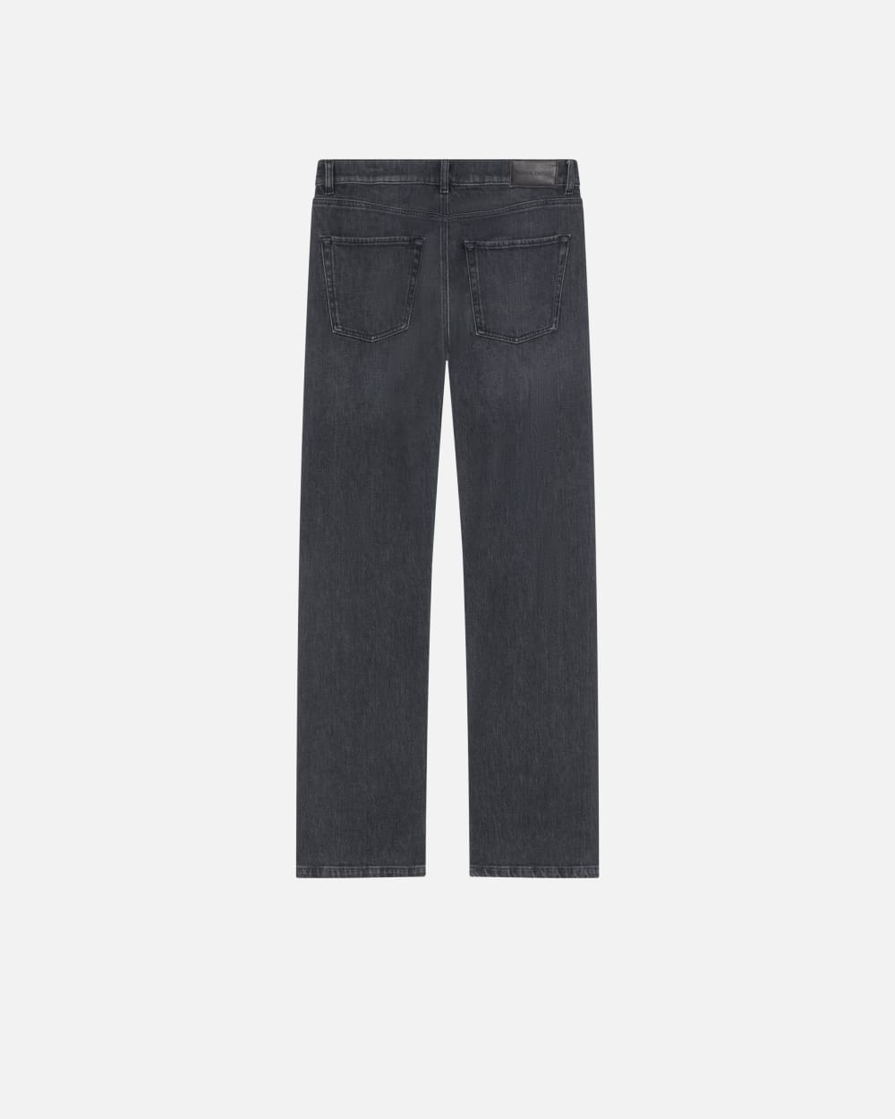 Jean cinq poches straight-fit en denim à délavage vintage gris foncé. Coupe taille basse avec entrejambe légèrement bas à lesprit cool et décontracté. Fermeture zippée et bouton clou en métal.
