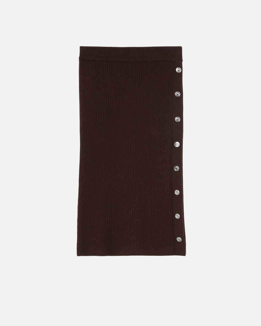 Jupe mi-longue droite en maille finement côtelée de laine mélangée. Modèle ajusté, longueur genou, doté dune patte de boutonnage à boutons en métal griffés du logo Love Birds permettant de créer une fente latérale plus ou moins grande en fonction du nombre de boutons ouverts.