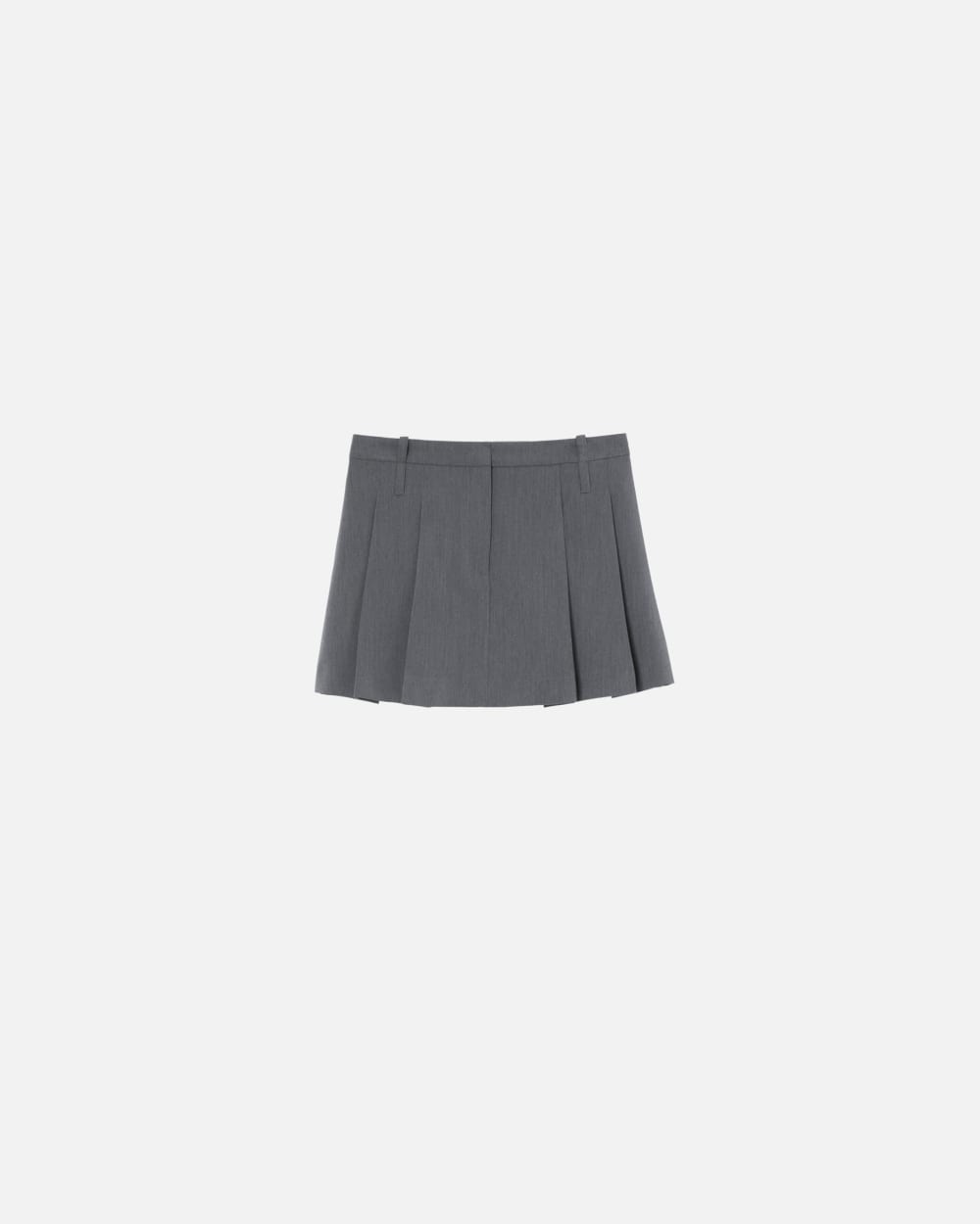 Mini-jupe plissée style varsity en tissu fluide de viscose mélangée stretch. Ce modèle avec maxi passants de ceinture à la taille, poches passepoilées au dos et poches prises dans les coutures latérales est parfait pour créer des tenues couture de jour, originales et très féminines. Fermeture zippée et agrafe invisible.