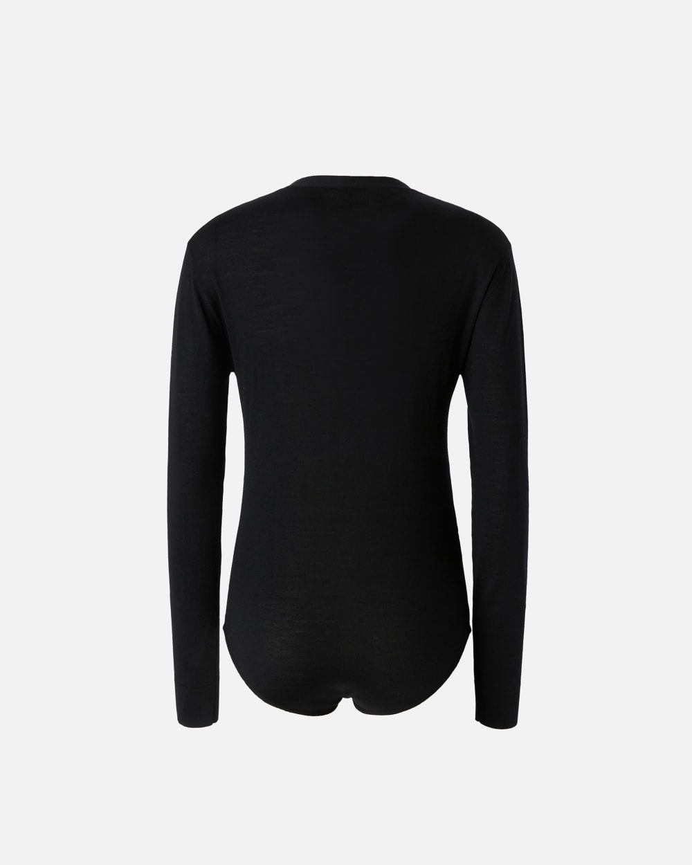 Body à manches longues en maille de pure laine extra-fine façon cardigan boutonné. Ce body à large col V est une pièce féminine idéale pour compléter vos tenues de tous les jours, pour aller au bureau comme pour vos moments de loisir. Fermeture boutonnée sur le devant.
