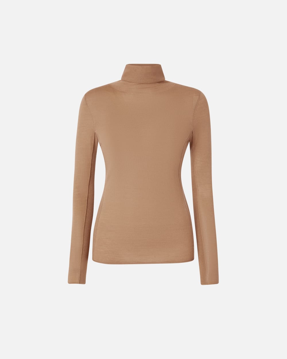 Pull à col roulé à manches longues en fil fin de laine et soie, au toucher lisse et agréable. Sa coupe ajustée, ses manches longues et son col roulé en font un vêtement polyvalent et toujours élégant, que ce soit pour une tenue de bureau ou un look de soirée.
