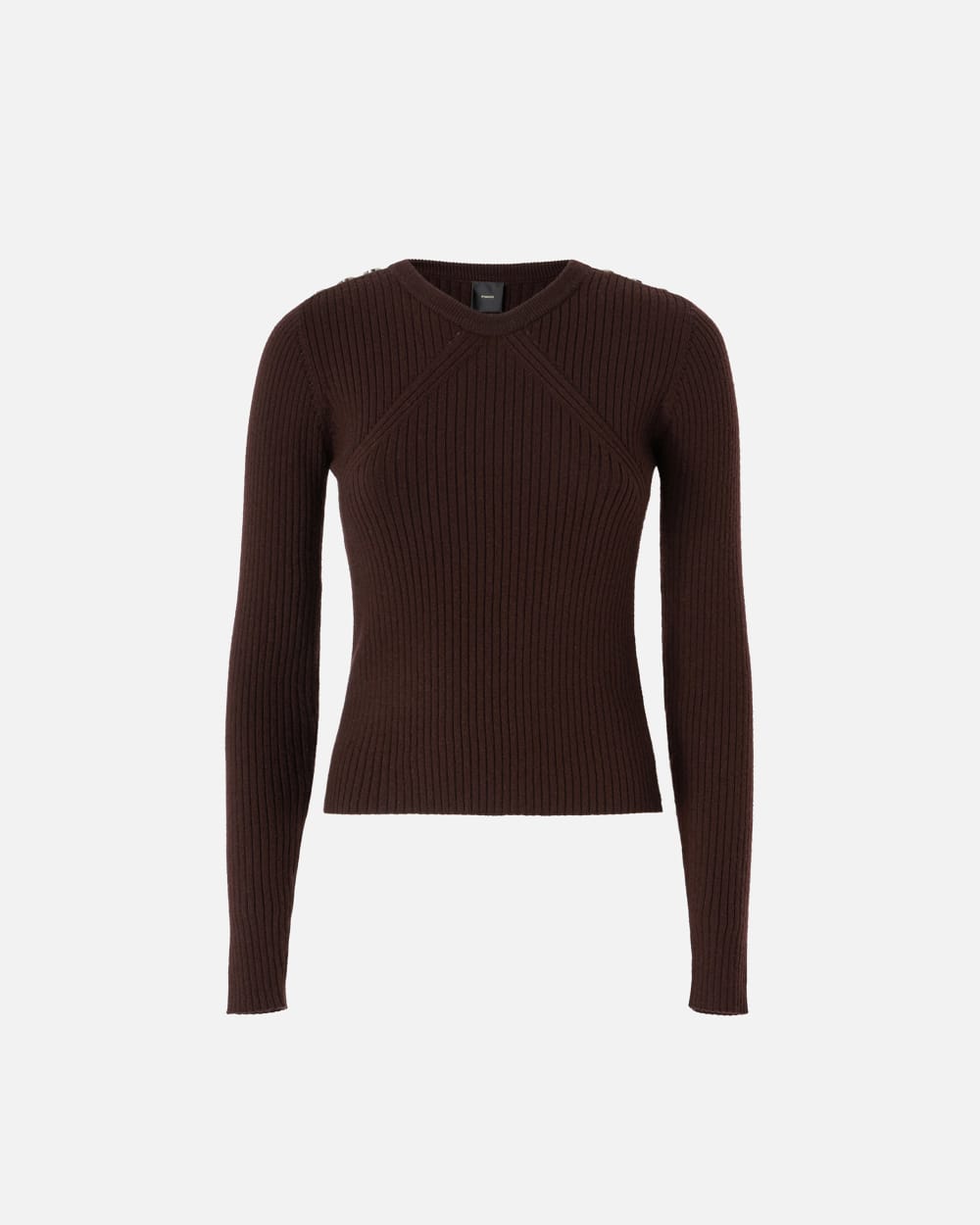 Pull côtelé à manches longues en laine mélangée stretch. Coupe ajustée avec boutons en métal aux épaules et encolure légèrement en V à fines côtes. À porter avec la jupe crayon assortie pour un total look alliant à merveille féminité et confort en ce début de saison.