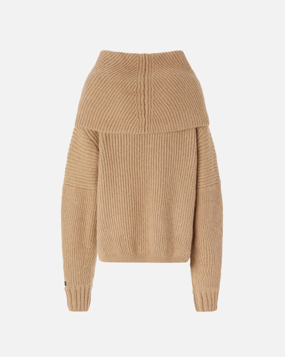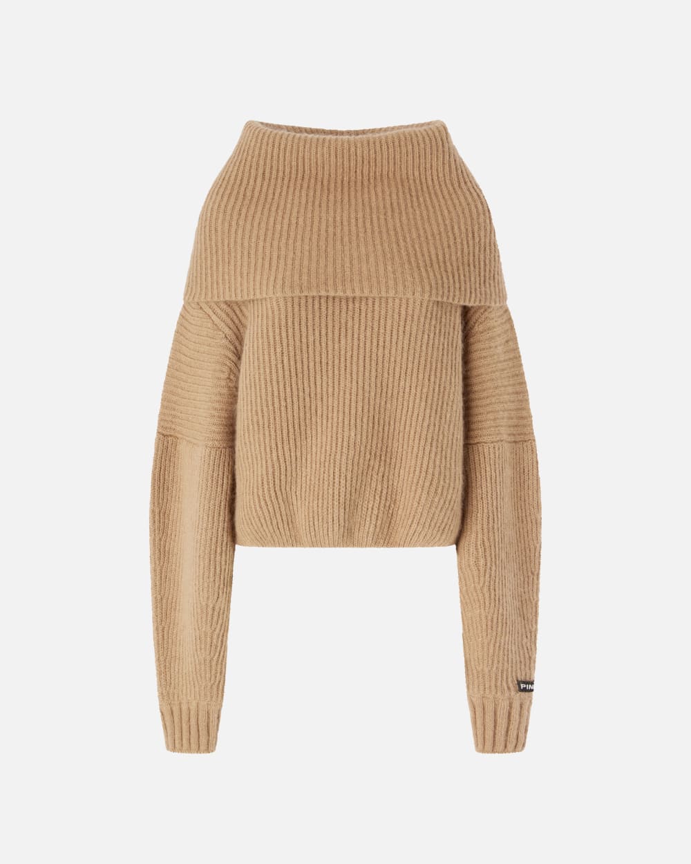 Pull ample en maille côtelée de mohair mélangé à large col châle enveloppant, à porter plus ou moins rabattu en fonction du style recherché. Pour encore plus de confort, ses manches longues sont montées basses et lune delles est griffée dune étiquette à logo PINKO.