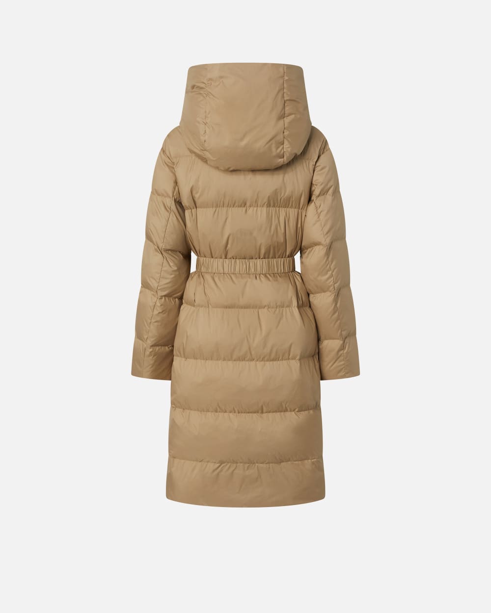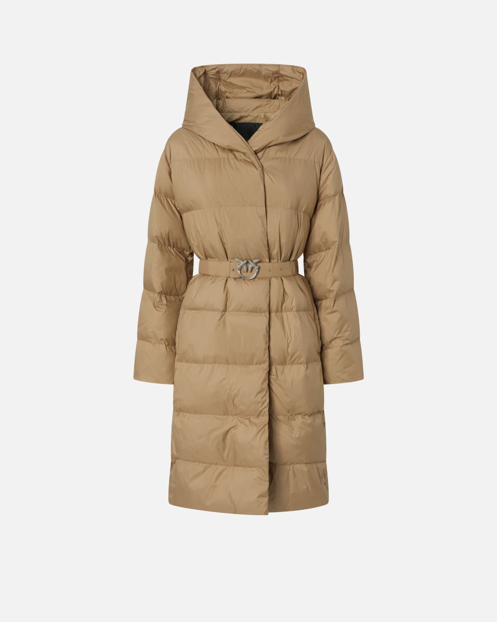 Padded technical canvas pea coat with belt beige e terra di toscana