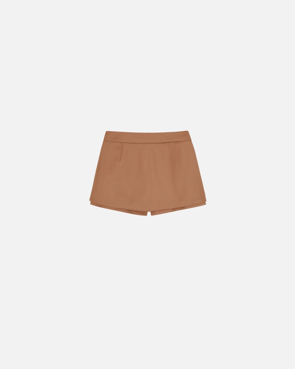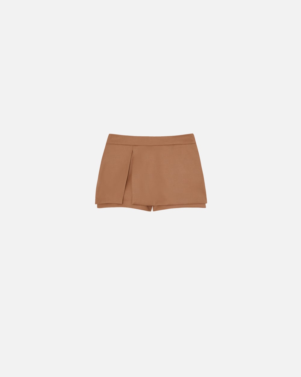Short moulant en flanelle de laine mélangée stretch avec panneau sur le devant et au dos pour un effet mini-jupe original. Coupe à taille élastiquée facile à enfiler pour un look parfait et confortable en un seul geste.