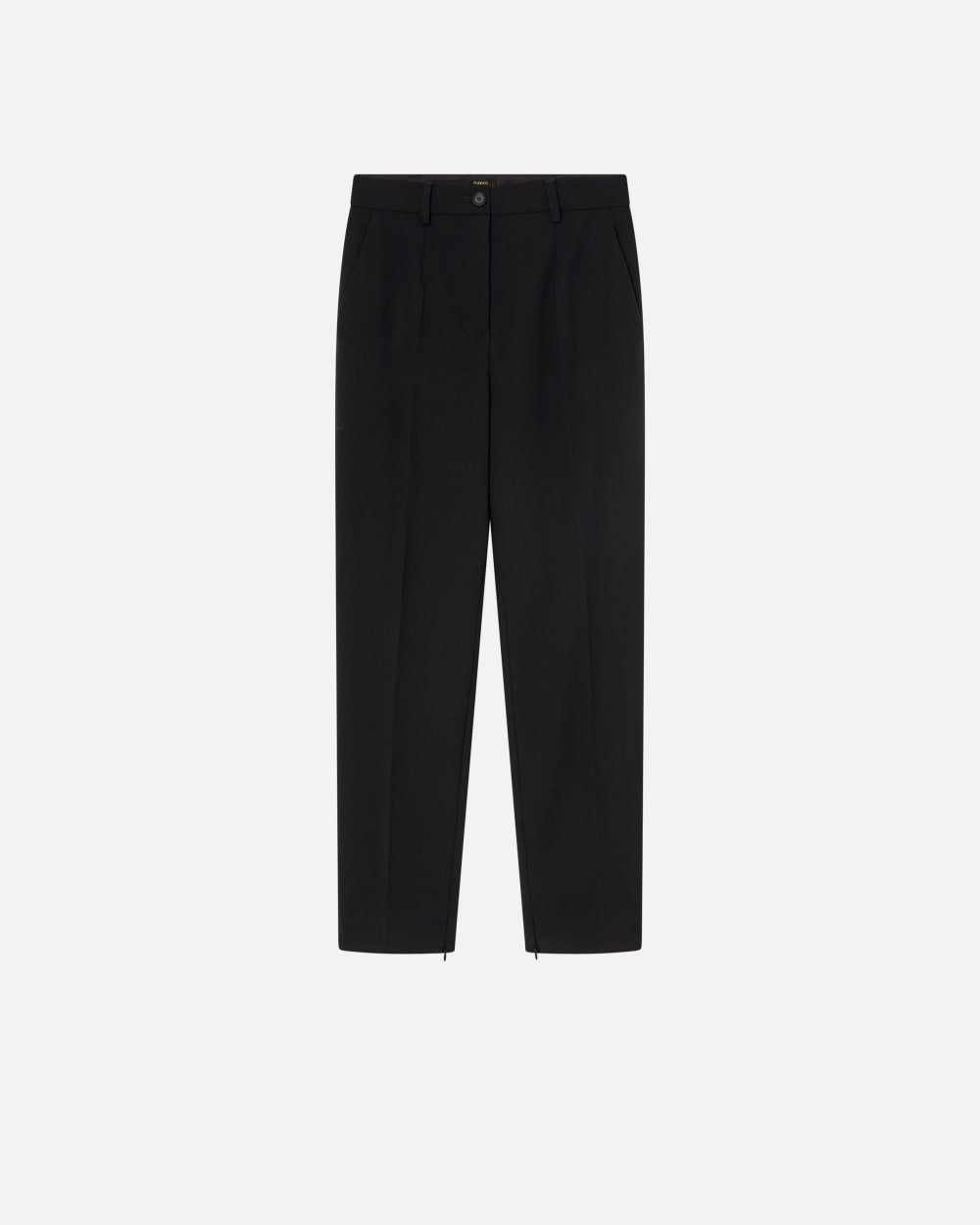 Pantalon cigarette élégant en twill de laine mélangée stretch orné d’un petit empiècement triangulaire au milieu du dos, à la taille. Coupe près du corps avec passants de ceinture à la taille, poches cavalières sur les hanches, poches passepoilées et boutonnées au dos et petite fente en bas sur le côté intérieur. Avec le blazer droit assorti, ce pantalon crée une version chic et moderne du tailleur, à porter au bureau mais aussi lors de vos soirées spéciales. Fermeture par bouton et zip.