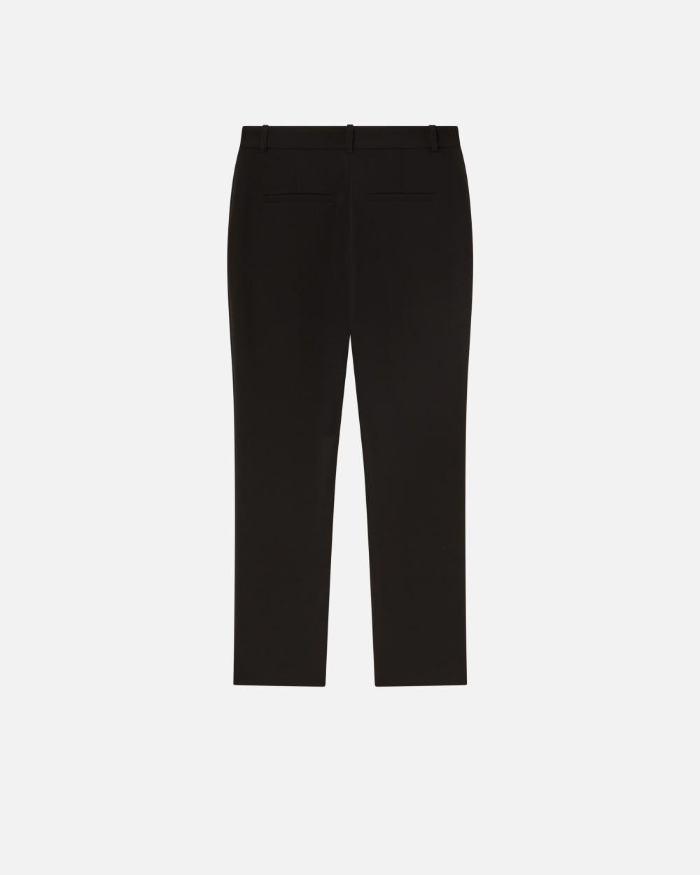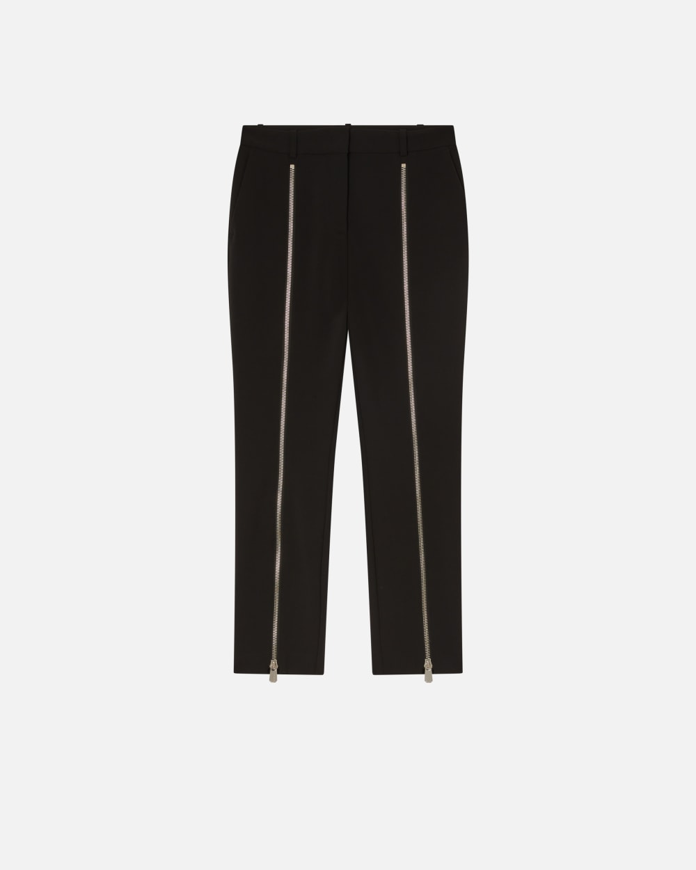 Pantalon cigarette long et ajusté en crêpe stretch avec fermeture zippée en métal sur toute la longueur de la jambe. Taille classique avec passants pour ceinture, poches cavalières sur les hanches et poches passepoilées au dos. Fermeture par zip et agrafe sous patte.
