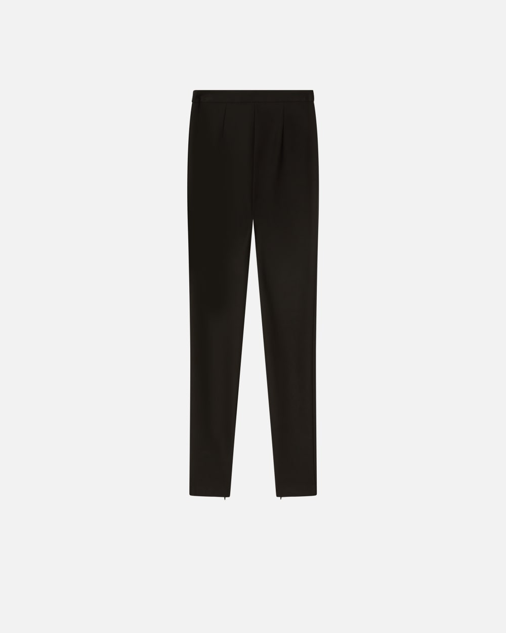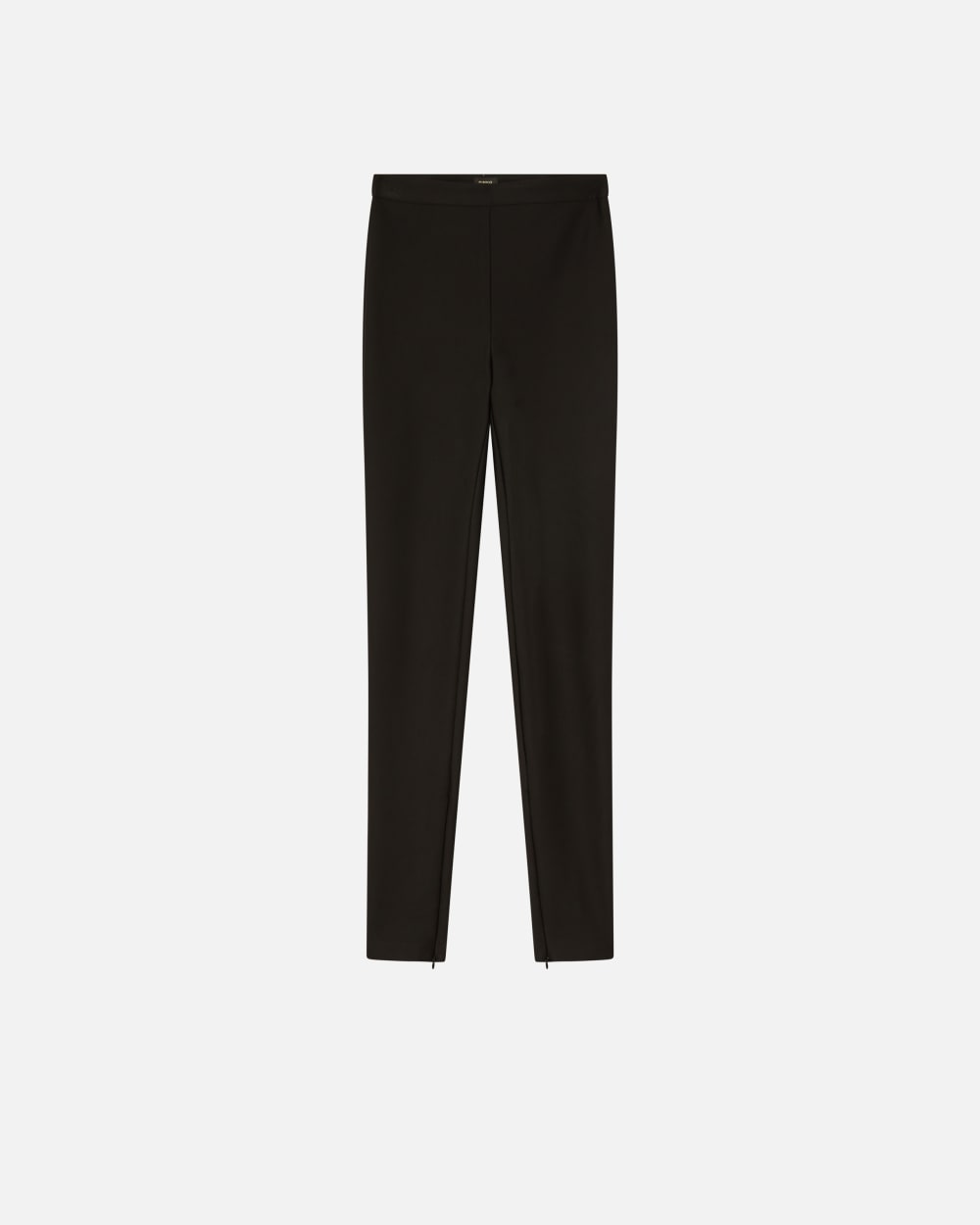 Pantalon moulant type leggings en tissu technique de viscose bi-stretch : un pantalon extensible dans les deux sens pour un maximum de confort. Modèle avec fermeture zippée invisible en bas sur le côté intérieur, qui, lorsqu’elle est ouverte, permet de créer une fente mettant en valeur les chaussures qui accompagnent votre look.