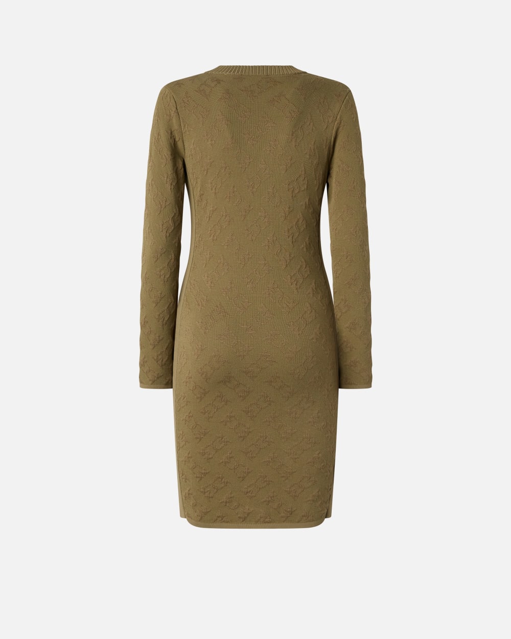 Robe courte façon cardigan en maille jacquard technique de viscose avec logo Love Birds Monogram légèrement en relief. Coupe ajustée avec col V plongeant, manches longues et quatre poches passepoilées boutonnées sur le devant. Modèle à bords-côtes. Sa patte de boutonnage féminine permet de créer une mini-fente en bas en ouvrant un ou deux boutons.