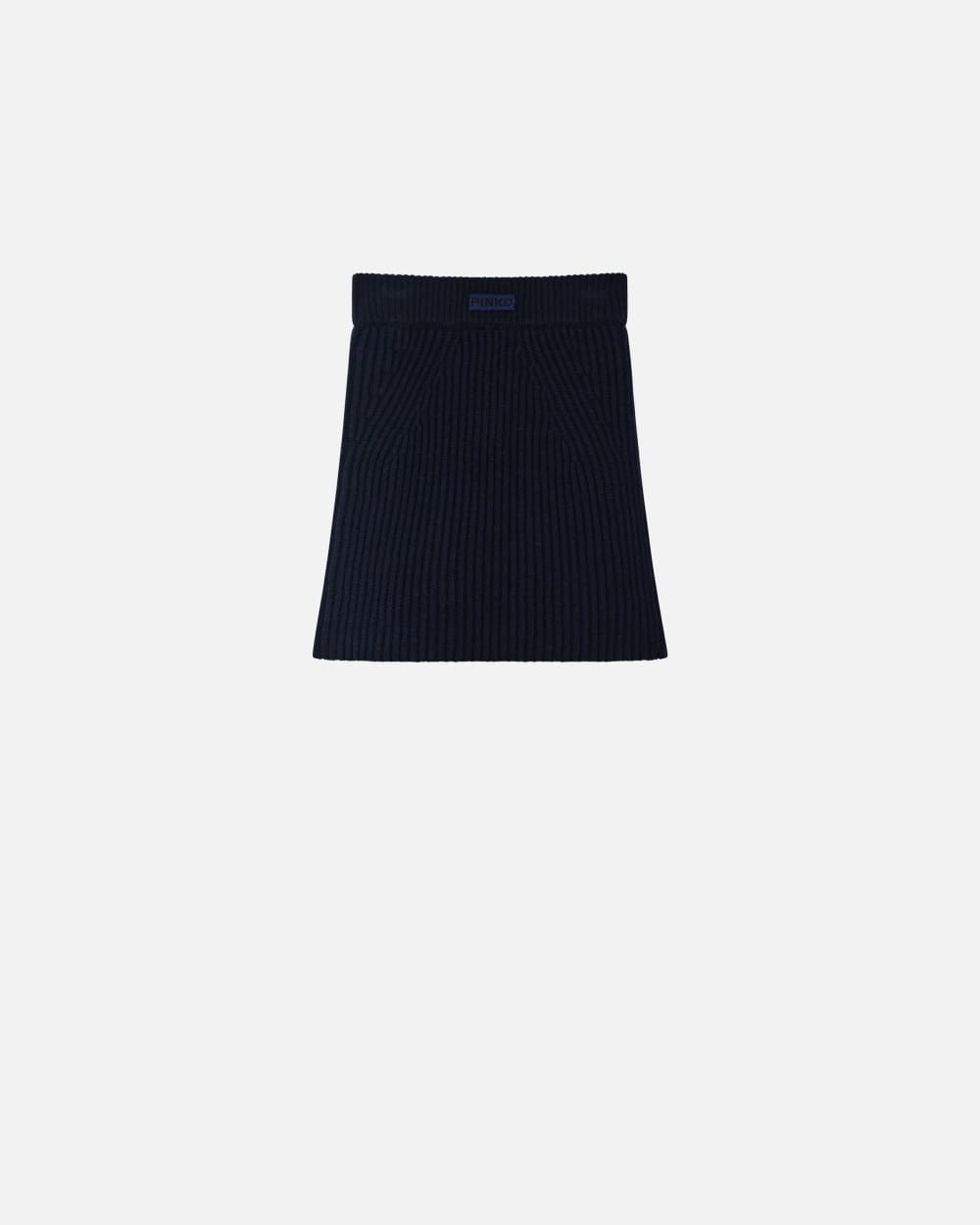 Minigonna dalla linea leggermente a trapezio in morbida maglia di lana e cachemire lavorata a coste. Grazie alla mano calda della maglia, la minigonna è un capo quotidiano da indossare per look speciali e dal tocco originale, soprattutto se insieme al pullover abbinato. La gonna è personalizzata con etichetta logata sul retro.