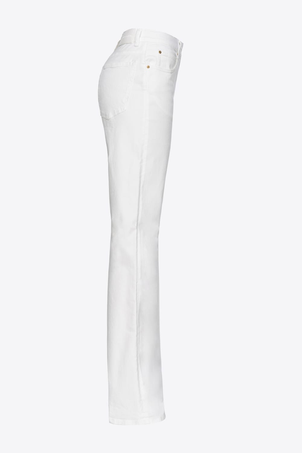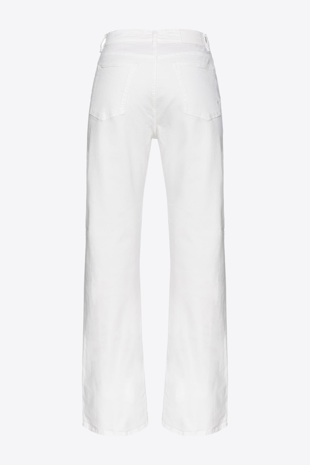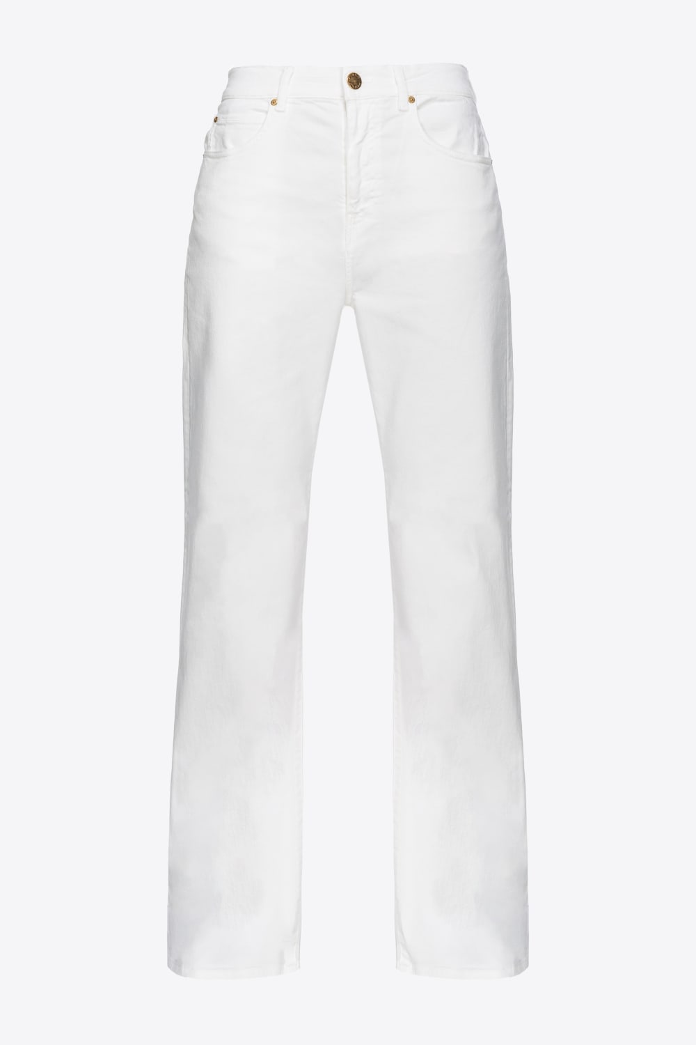 Jeans cinque tasche wide-leg in denim stretch. Vita bassa con passanti per cintura e gamba dalla linea dritta e ampia con orlo trattato a riserva e tagliato a vivo. Chiusura con zip e bottone a chiodo in metallo.