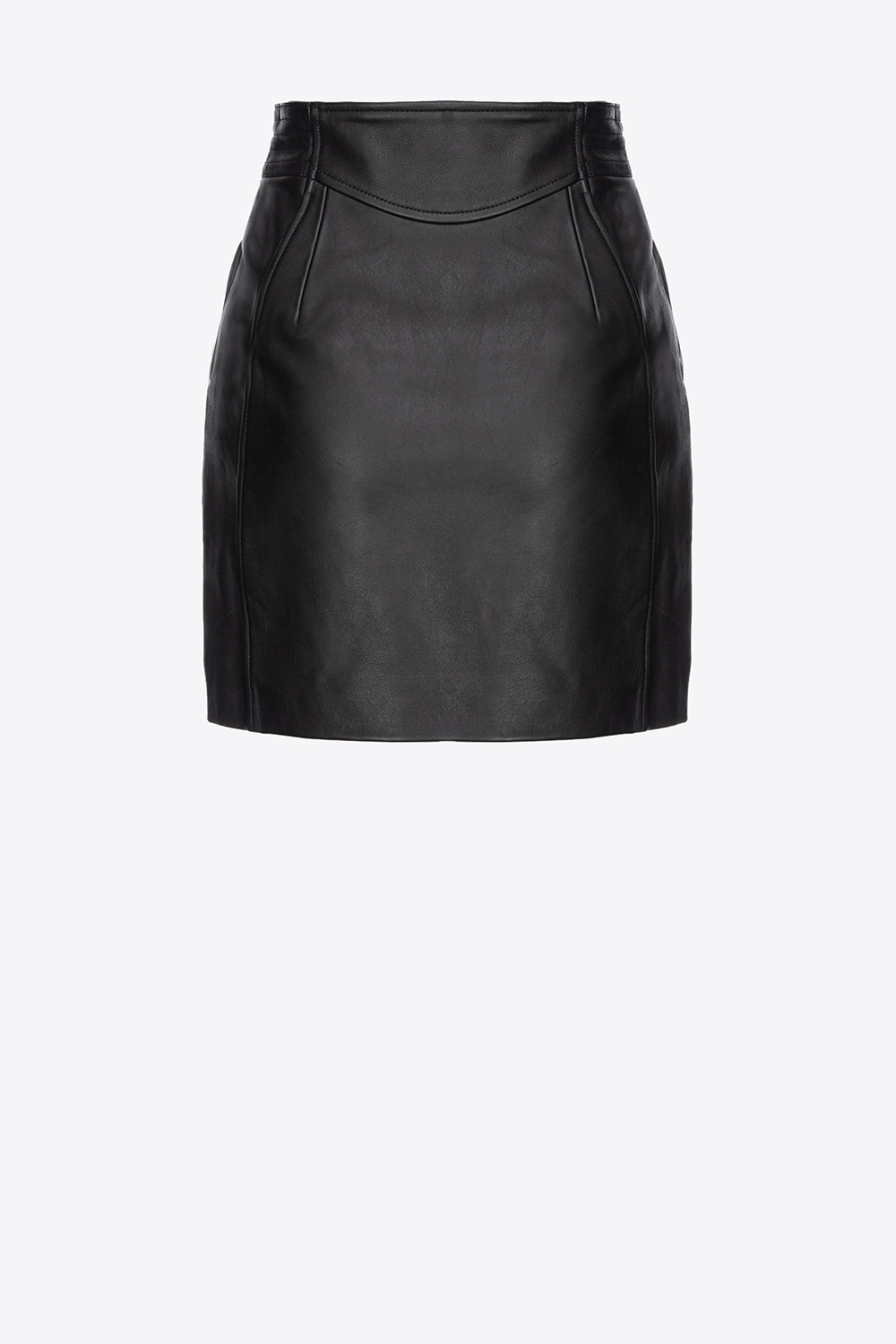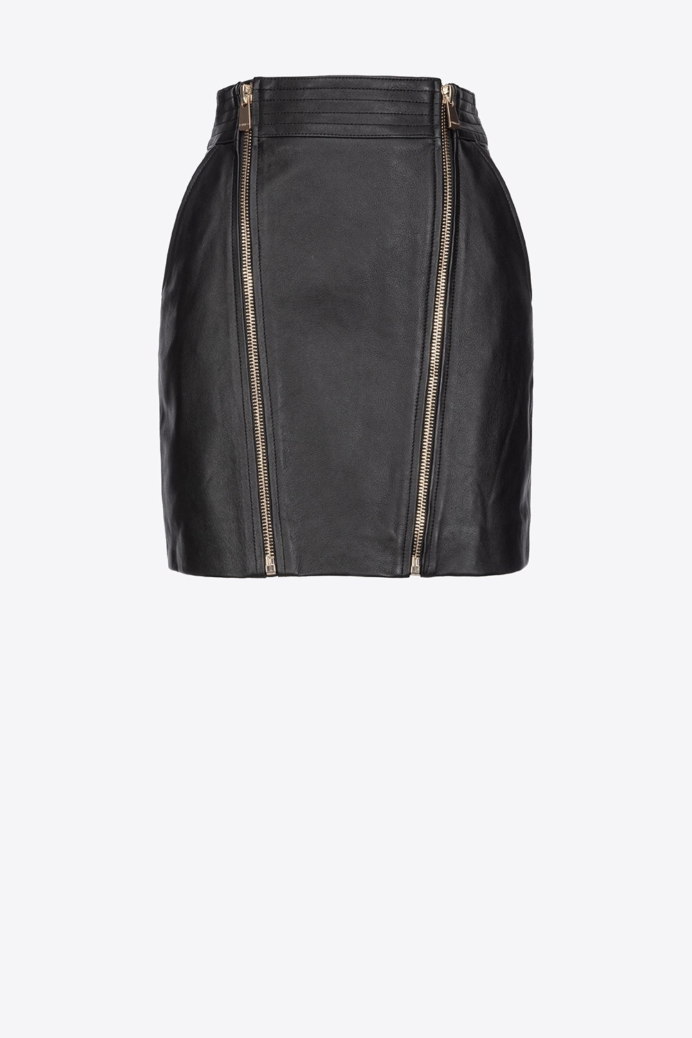 Minigonna dalla silhouette aderente a tubino in nappa. Vita alta costruita a baschina sul retro e doppia zip in metallo davanti. Foderata.