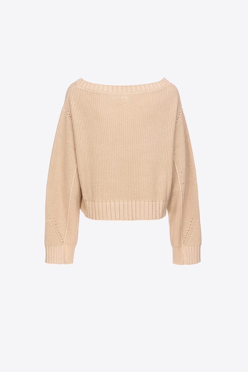 Pullover dalla linea boxy in maglia di misto cotone e cachemire lavorato a costine. Profondo scollo a V e maniche lunghe a giro basso. Personalizzazione con ricamo logo Love Birds sul retro del collo.