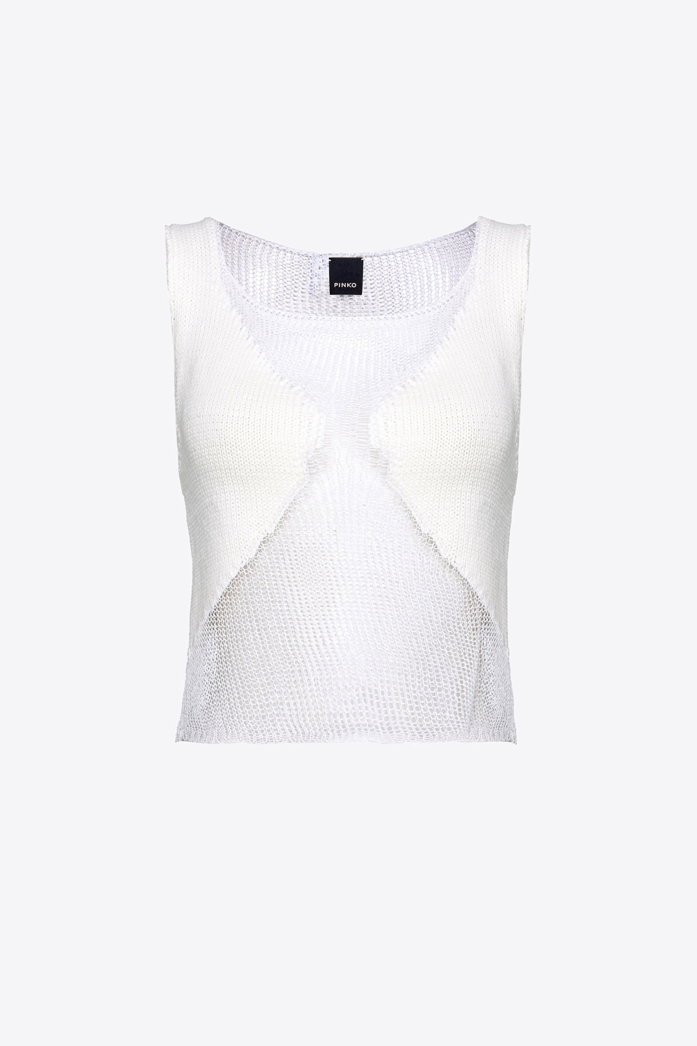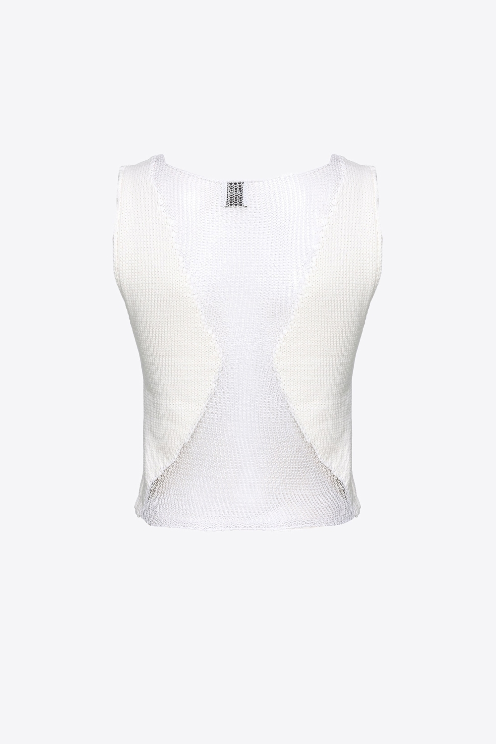 Top senza maniche in maglia di misto cotone a rete di diversi spessori, che crea un effetto semitrasparente dove la maglia è più sottile.