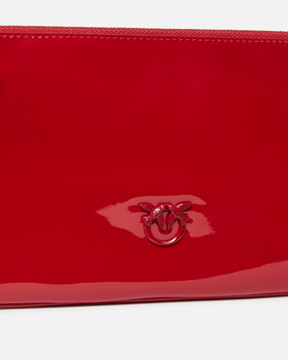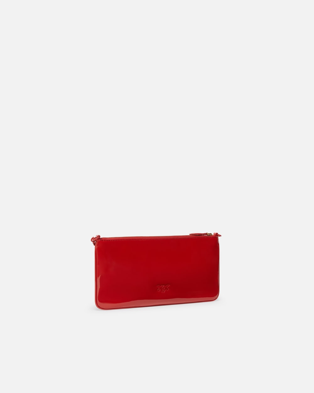 Piccola borsa a mano stile pochette Flat Bag dalla forma rettangolare realizzata in tessuto effetto pelle verniciata, dal particolare finishing lucido. La borsetta è completata da una tracollina a catena metallica, smaltata in tono colore, che consente di portare la borsa anche a spalla. La piccola placca metallica a forma di logo uccellini Love Birds Diamond Cut regala un tocco iconico alla borsetta, perfetta per completare con un tocco audace i tuoi look per le occasioni speciali. L’interno della pochette è foderato in polycotton e include una pratica tasca a parete chiusa con zip. Attiva la tua borsa PINKO: verifica l’autenticità del tuo prodotto e accedi all’esperienza personalizzata avvicinando il tuo smartphone al ricamo Love Birds che trovi sul retro della borsa!