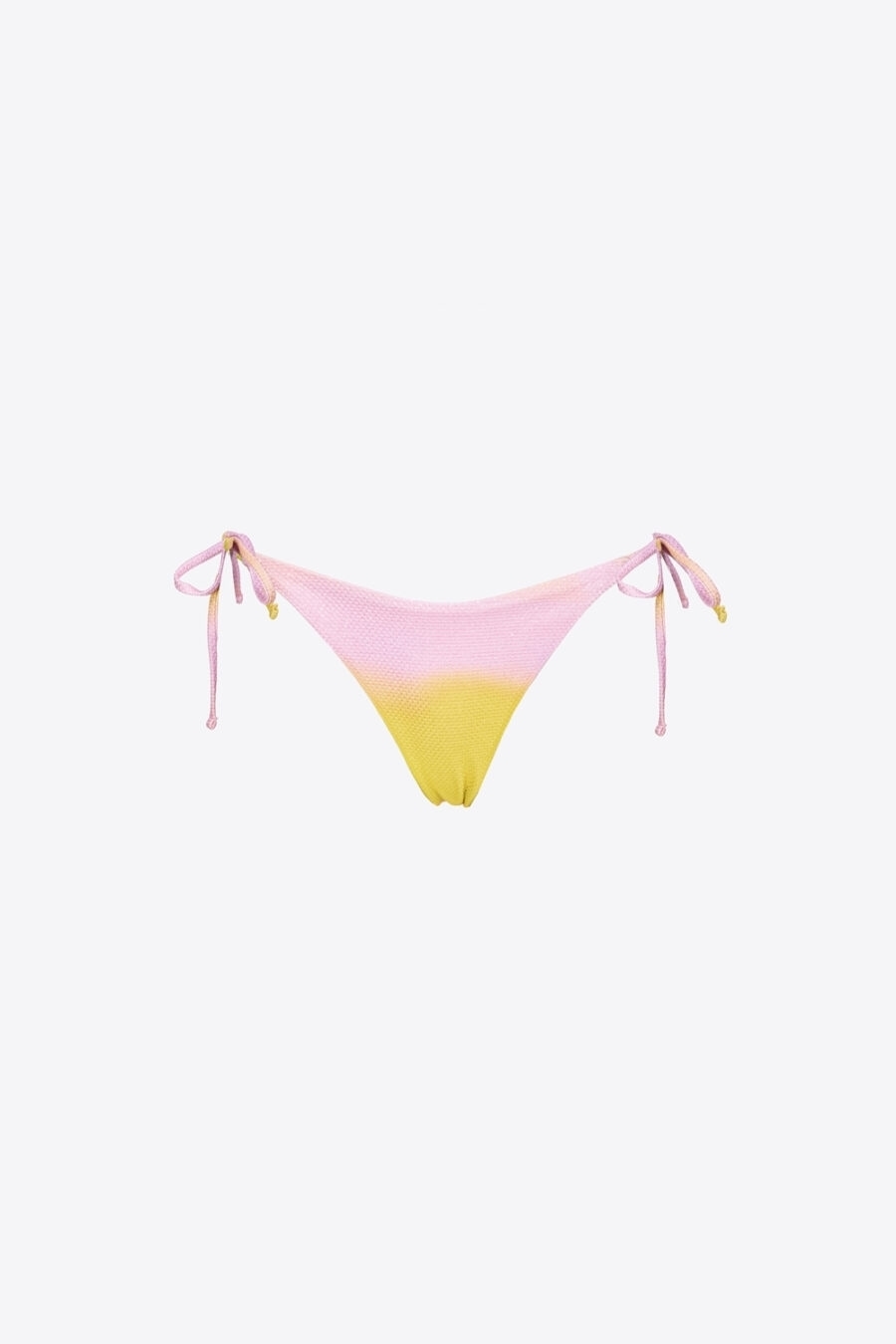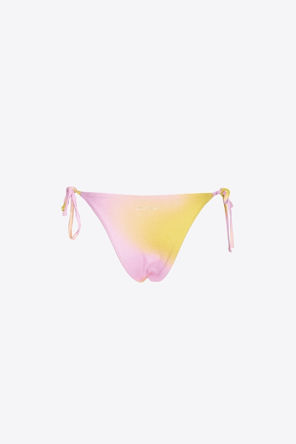 Low-waist bikini bottoms in technical piqué fabric with fade-effect print and thin ties on either side. Golden printed PINKO logo on the back.