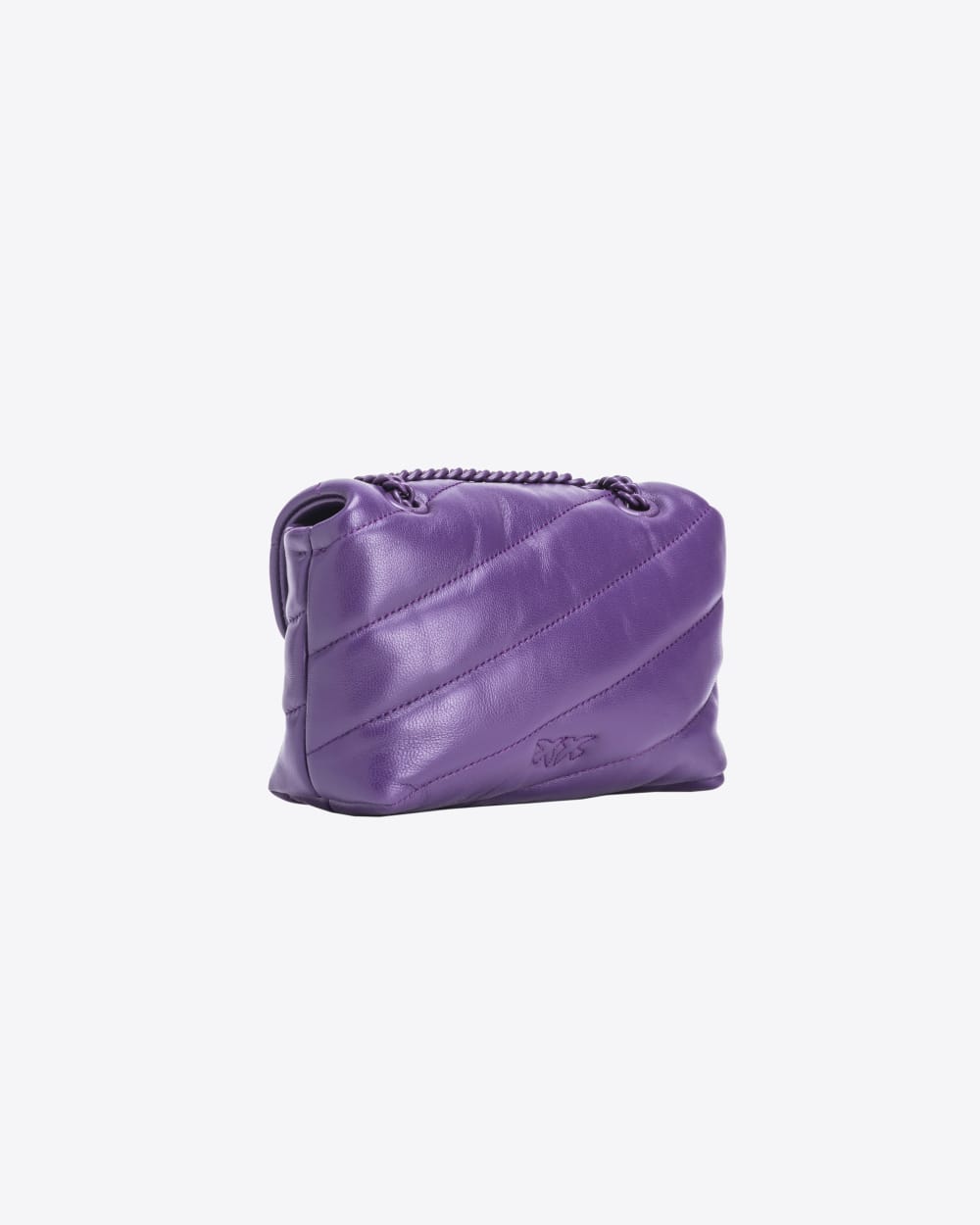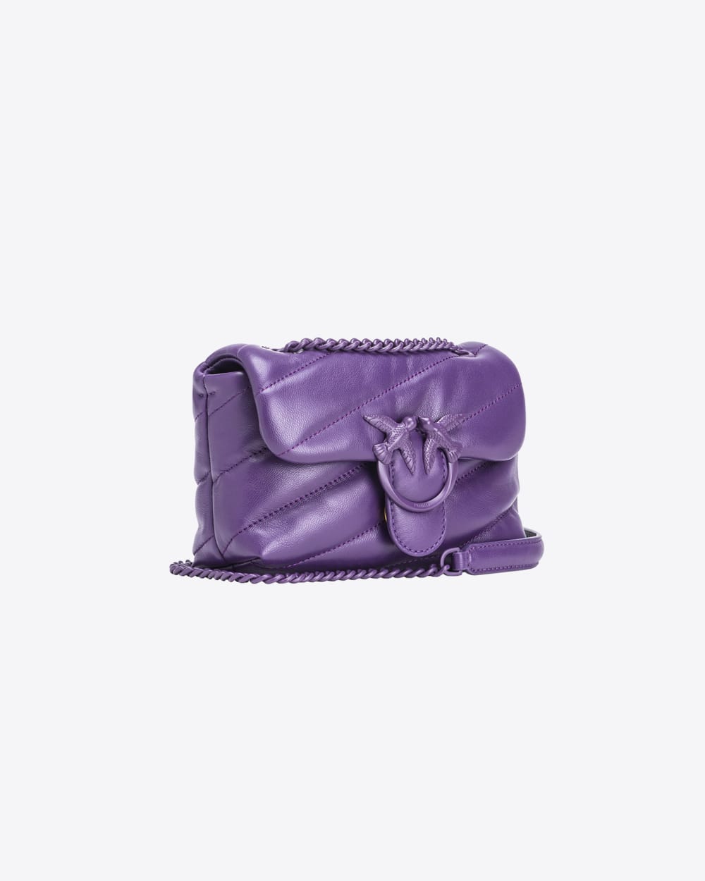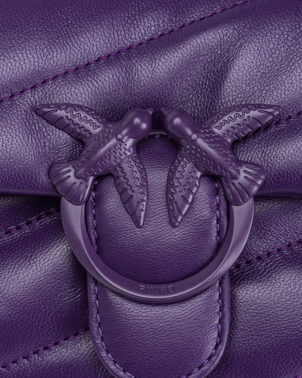 Baby Love Bag Puff in morbida nappa con maxi trapuntatura obliqua. La chiusura è completata dall’iconica fibbia Love Birds Diamond Cut in metallo, galvanica smatlata in tono colore dall’effetto opaco. L’interno è foderato in microfibra scamosciata e comprende tasca a parete chiusa con zip. La tracolla combina la classica catena rotonda al pratico spallaccio in pelle. Attiva la tua borsa PINKO: verifica l’autenticità del tuo prodotto e accedi all’esperienza personalizzata avvicinando il tuo smartphone al ricamo Love Birds che trovi sul retro della borsa!