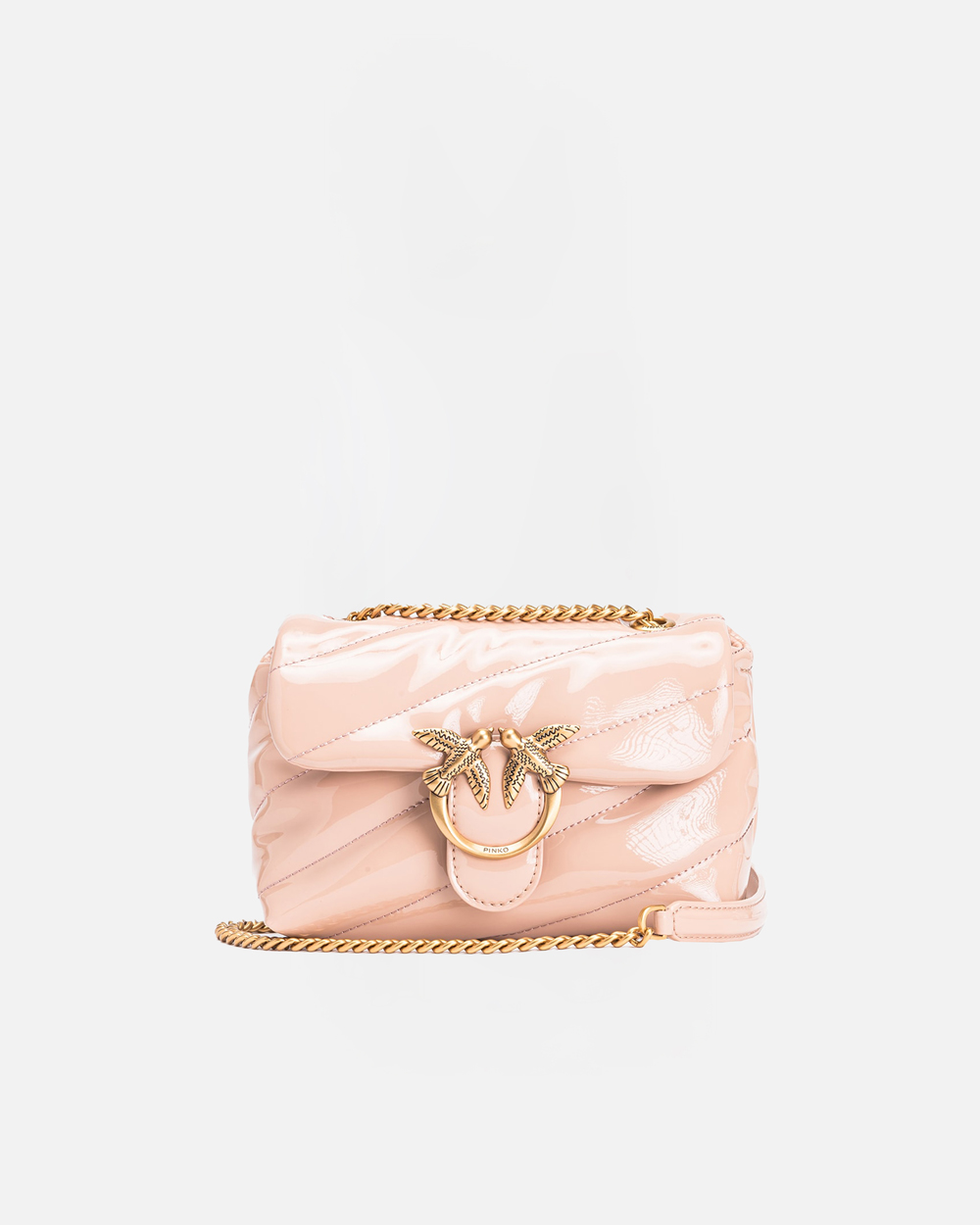 Piccola borsa a tracolla Baby Love Bag Puff in tessuto effetto pelle verniciata, dalla caratteristica forma morbida, grazie alla maxi trapuntatura obliqua. Questo particolare effetto verniciato è adatto per un tocco originale ai look da giorno, ma anche come completamento perfetto per i look da sera più speciali. La chiusura della borsa è personalizzata dall’iconica fibbia Love Birds Diamond Cut in metallo, galvanica antique gold, mentre l’interno foderato in microfibra scamosciata, include una pratica tasca a parete chiusa con zip. La tracolla scorrevole combina la classica catena metallica al pratico spallaccio in tessuto effetto pelle, ed è possibile indossare la borsa a tracolla oppure a spalla, doppiando la catena. Attiva la tua borsa PINKO: verifica l’autenticità del tuo prodotto e accedi all’esperienza personalizzata avvicinando il tuo smartphone al ricamo Love Birds che trovi sul retro della borsa!