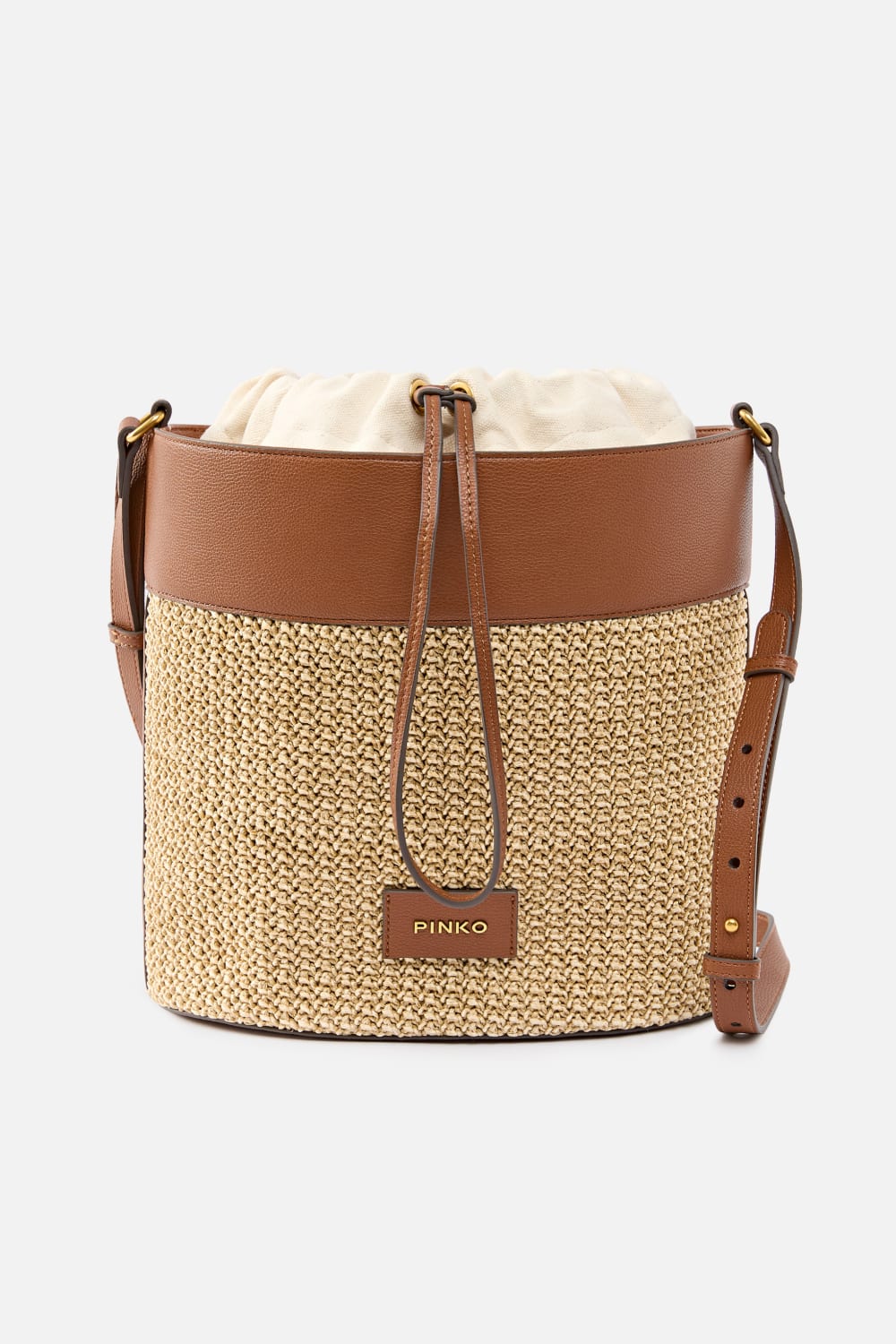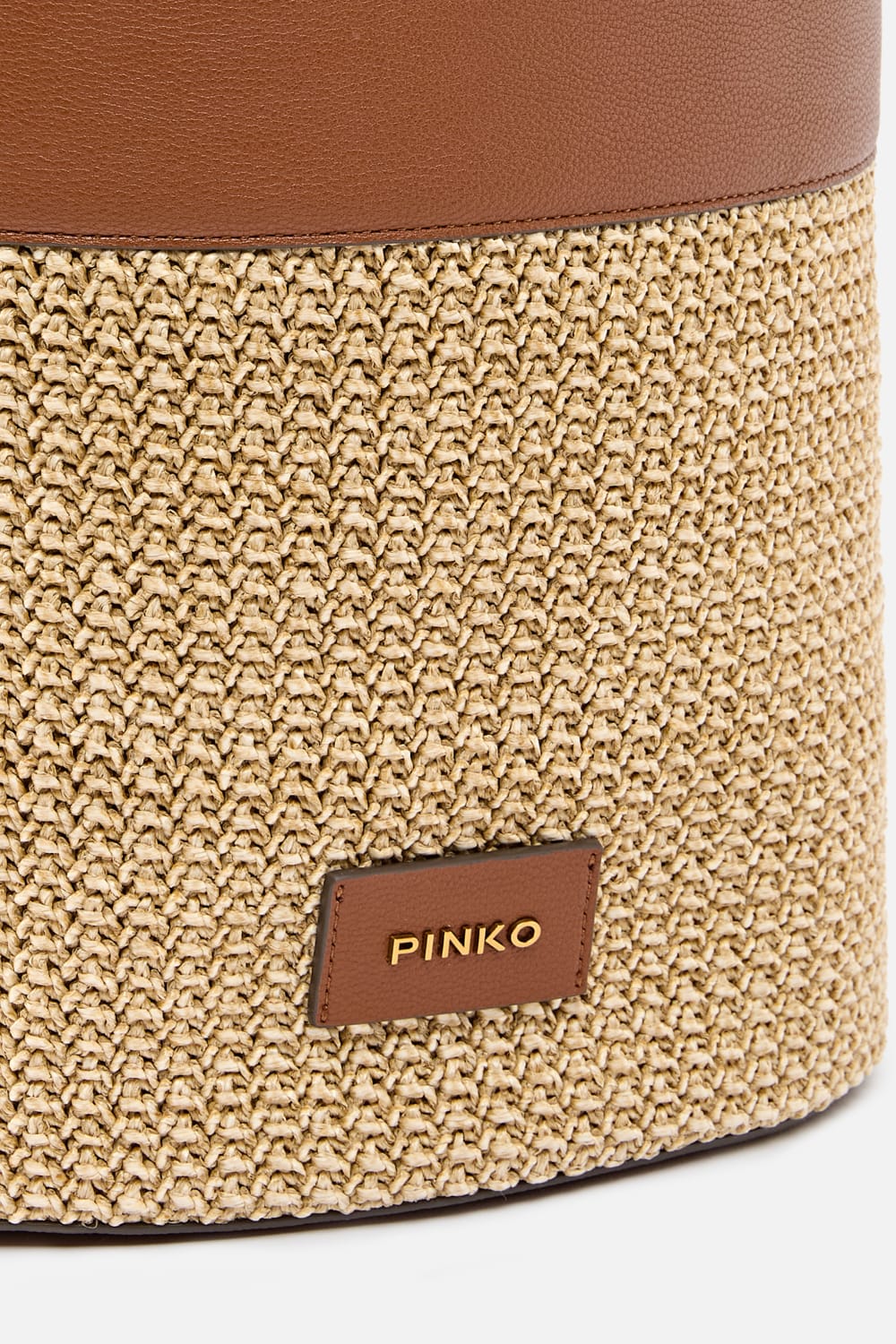 Secchiello Pinko in rafia intrecciata.Dettagli e coulisse in pelle. Foderata interna removibile. Con le sue dimensioni compatte 26 x 16 x 29 dm³ si adatta perfettamente a ogni spazio, unendo funzionalità e design senza mai passare inosservato.