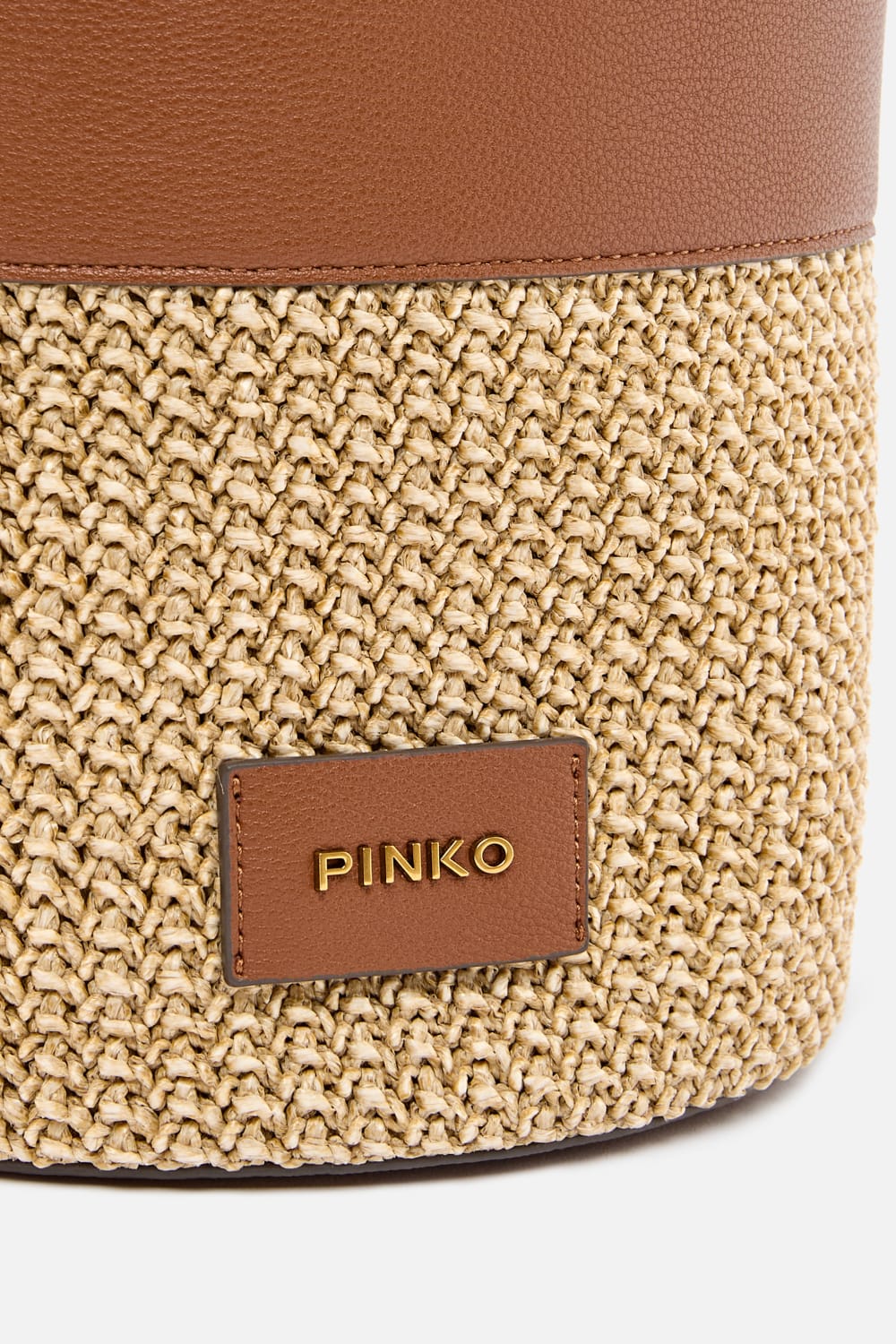 Secchiello Pinko in rafia intrecciata.Dettagli e coulisse in pelle. Foderata interna removibile. Con le sue dimensioni compatte 19 x 15x 23 dm³ si adatta perfettamente a ogni spazio, unendo funzionalità e design senza mai passare inosservato.