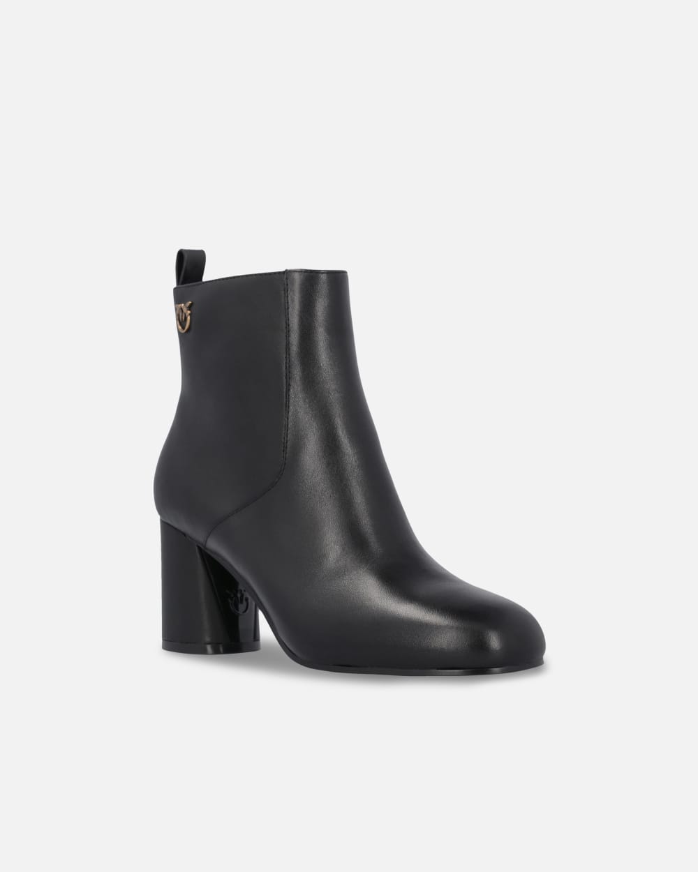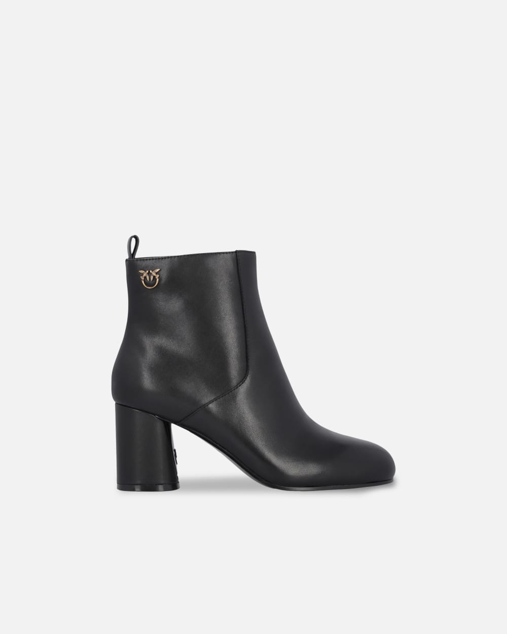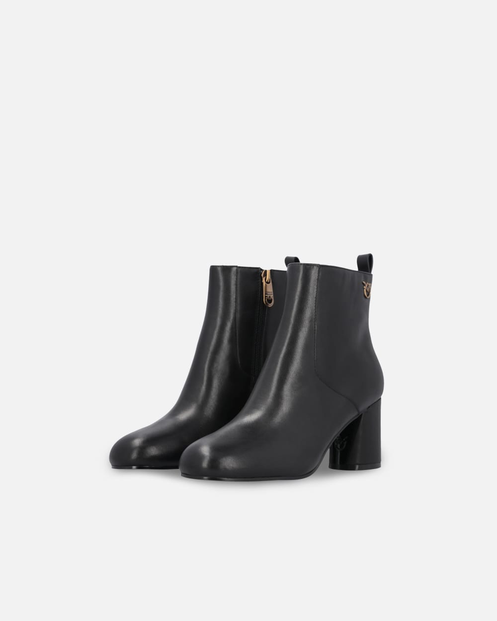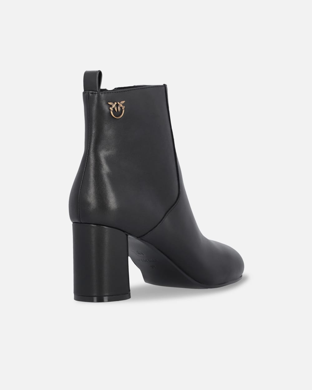 Stivaletti ankle boots in pelle con tacco chunky alto 7 cm. Punta stondata e gambale alto alla caviglia, personalizzato con placchetta logo Love Birds in metallo sul lato esterno. La zip sul lato interno del gambale facilita l’indosso. Suola in tunit, un materiale sintetico con caratteristiche simili al cuoio, soletta e fodera in pelle.