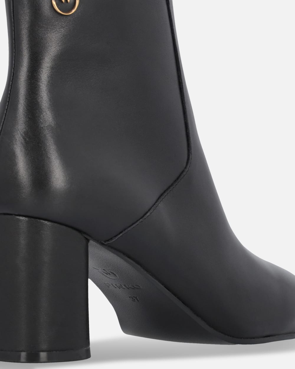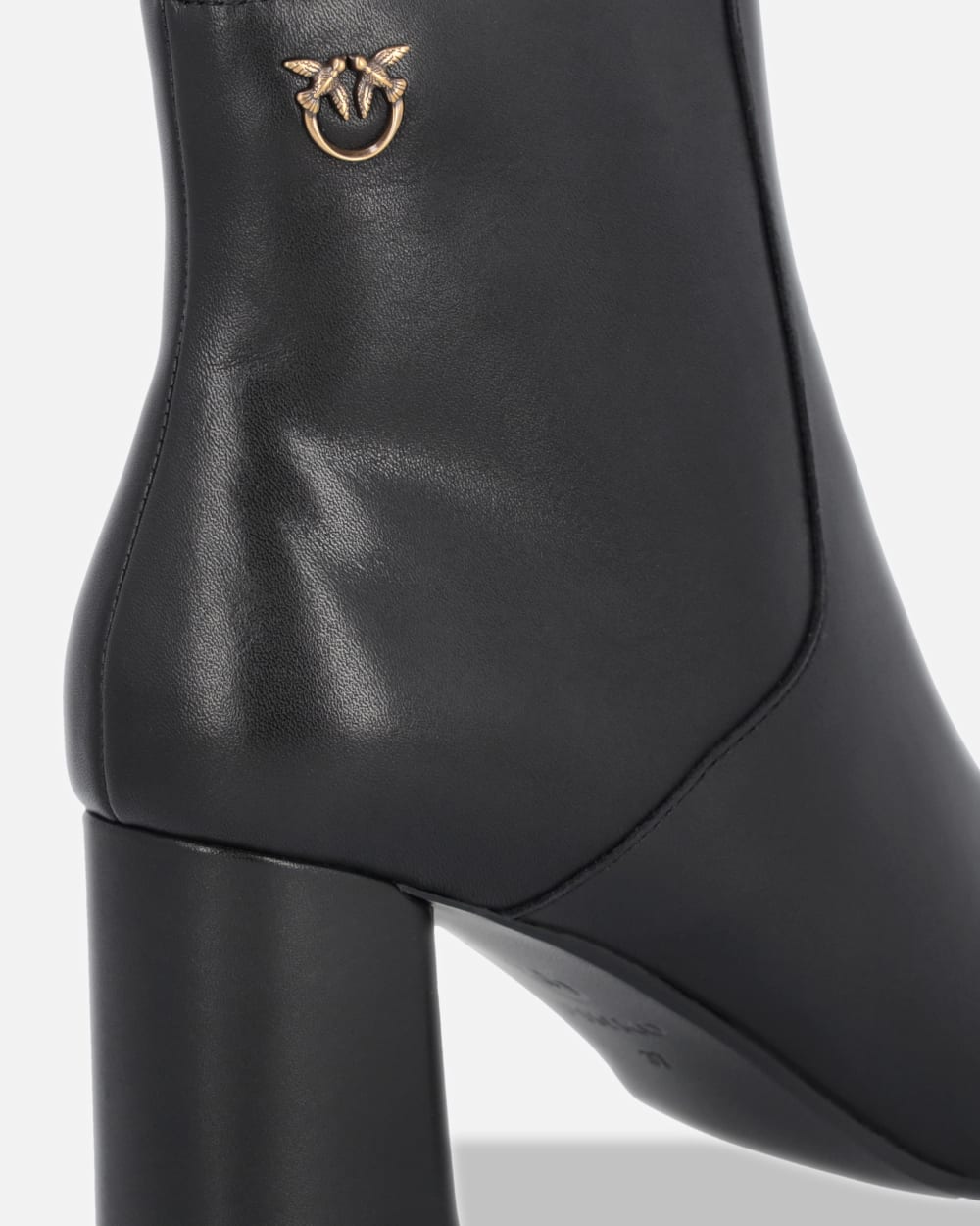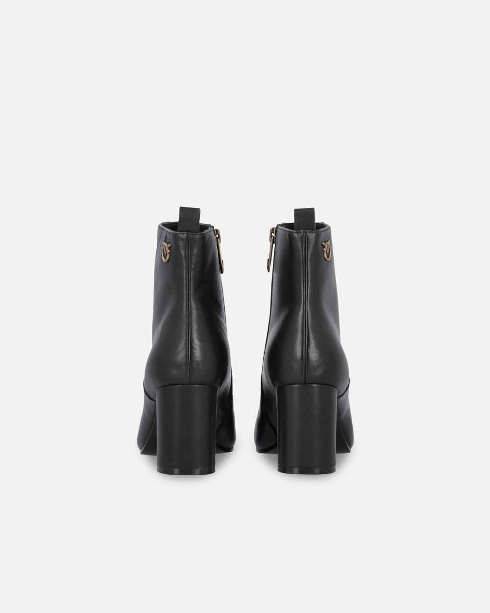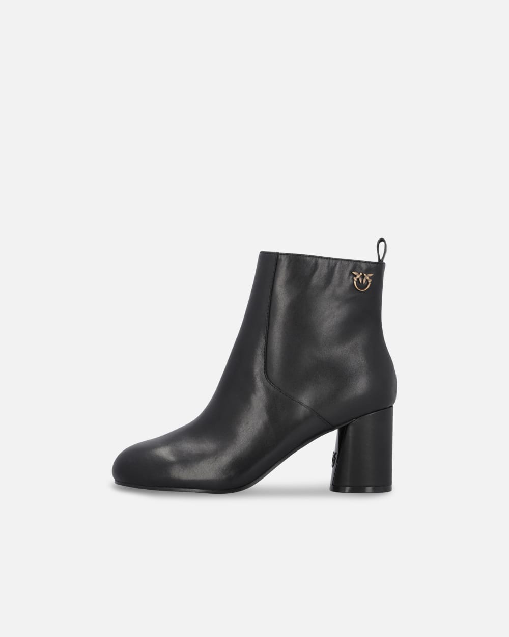 Stivaletti ankle boots in pelle con tacco chunky alto 7 cm. Punta stondata e gambale alto alla caviglia, personalizzato con placchetta logo Love Birds in metallo sul lato esterno. La zip sul lato interno del gambale facilita l’indosso. Suola in tunit, un materiale sintetico con caratteristiche simili al cuoio, soletta e fodera in pelle.